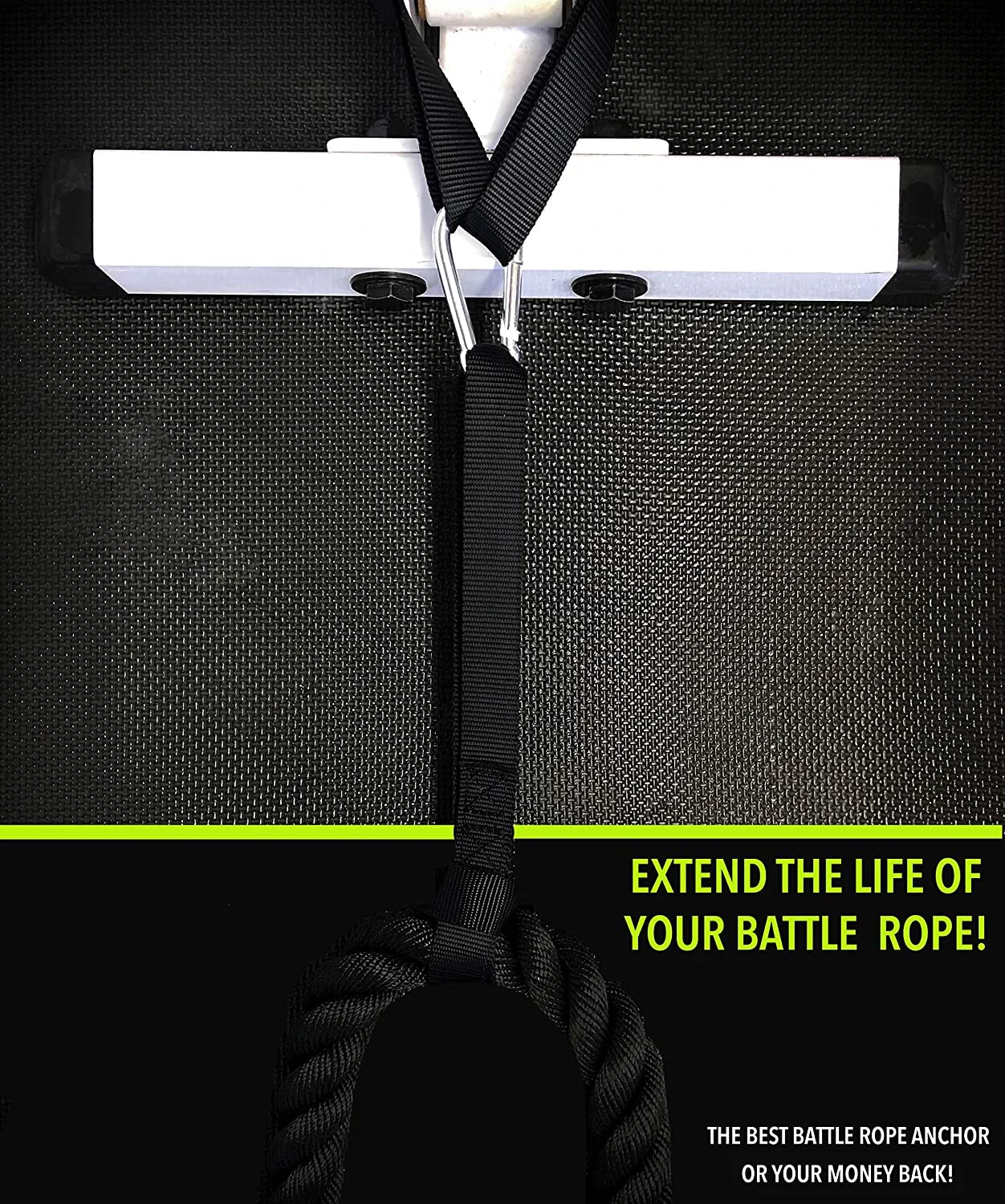 Battle Rope Anchor Kit with Nylon Straps & Carabiner Clip Stops Rope Damage | Stainless Steel Carabiner | for Crossfit |