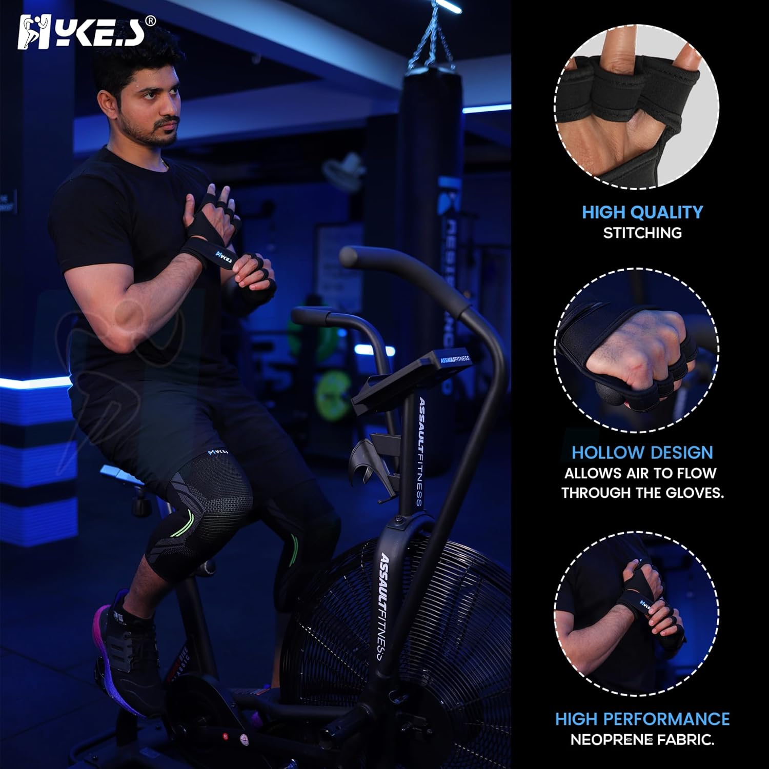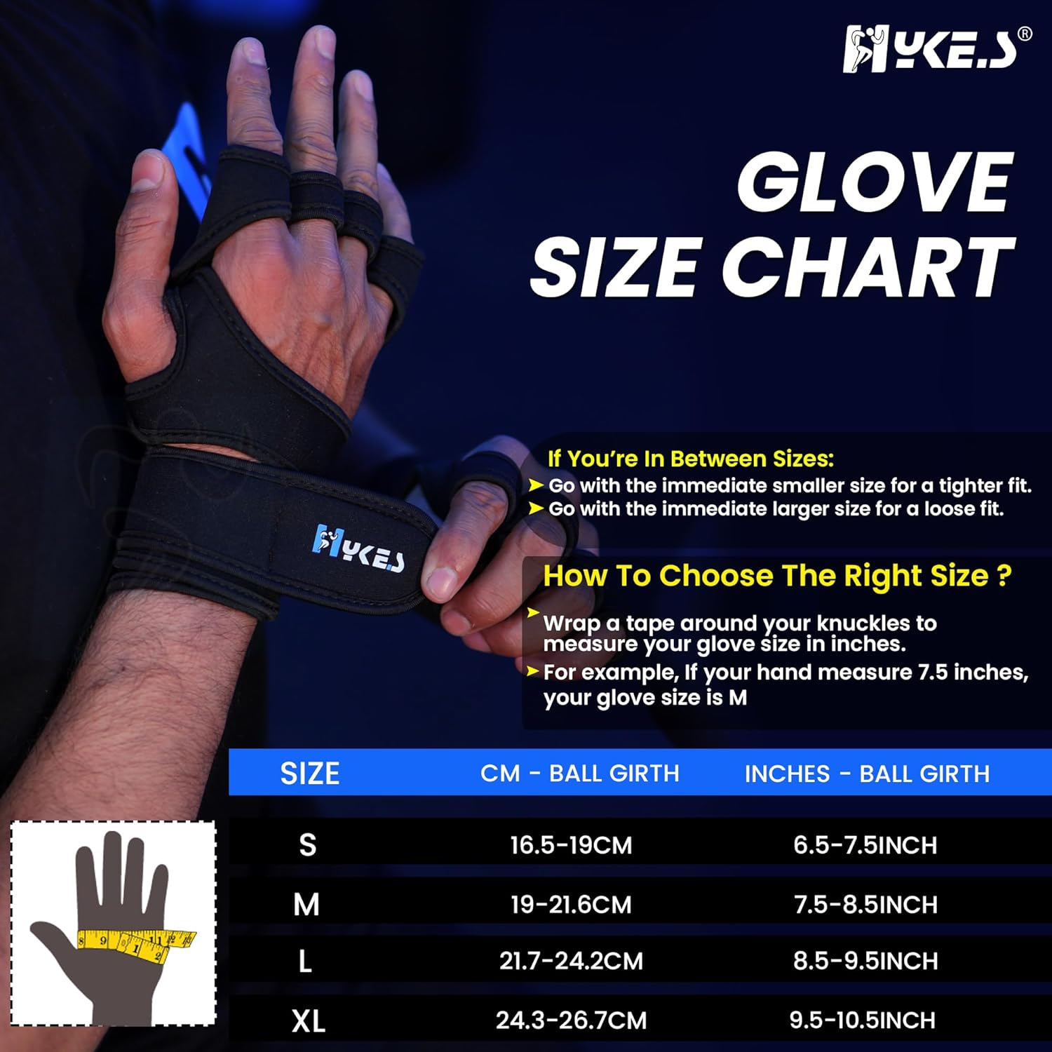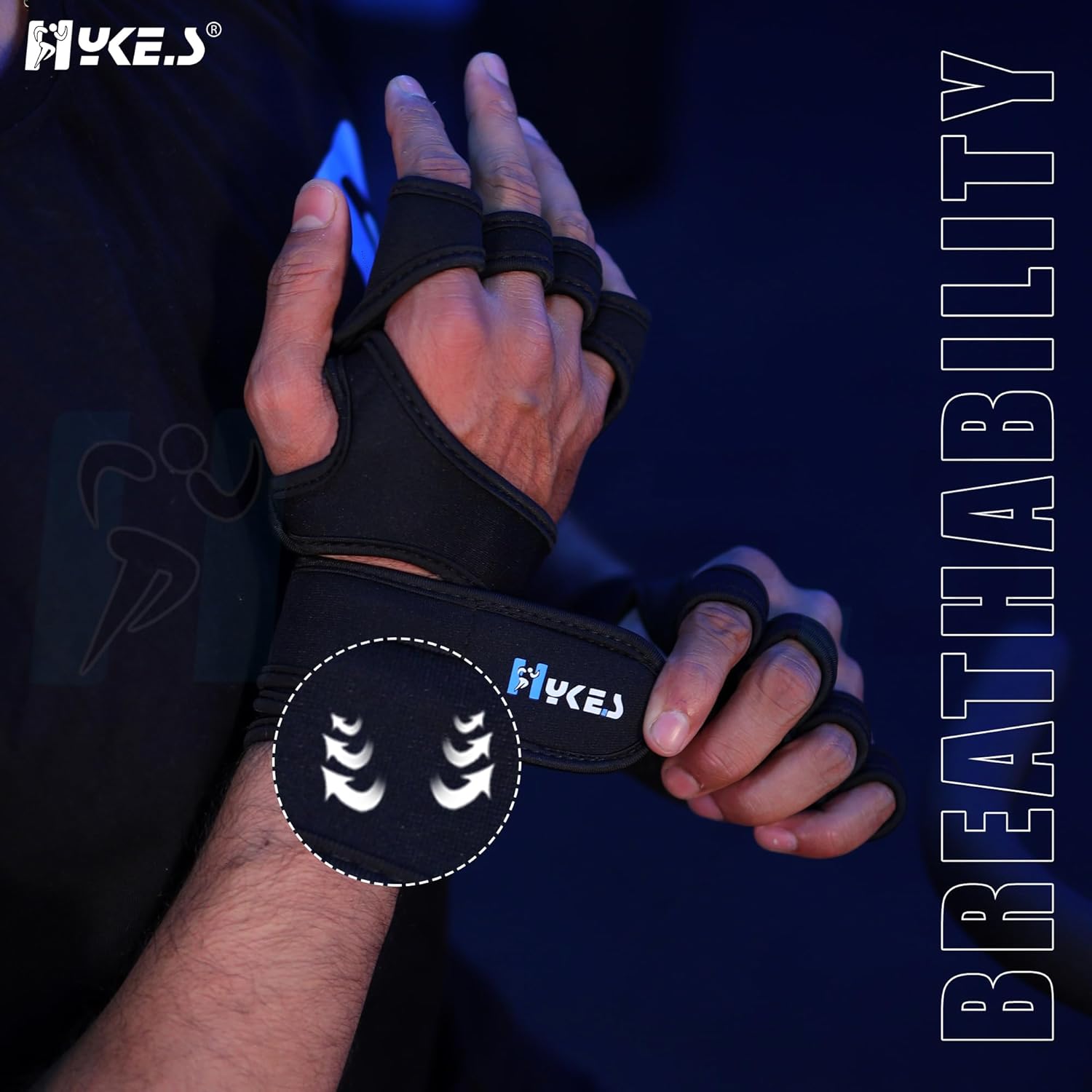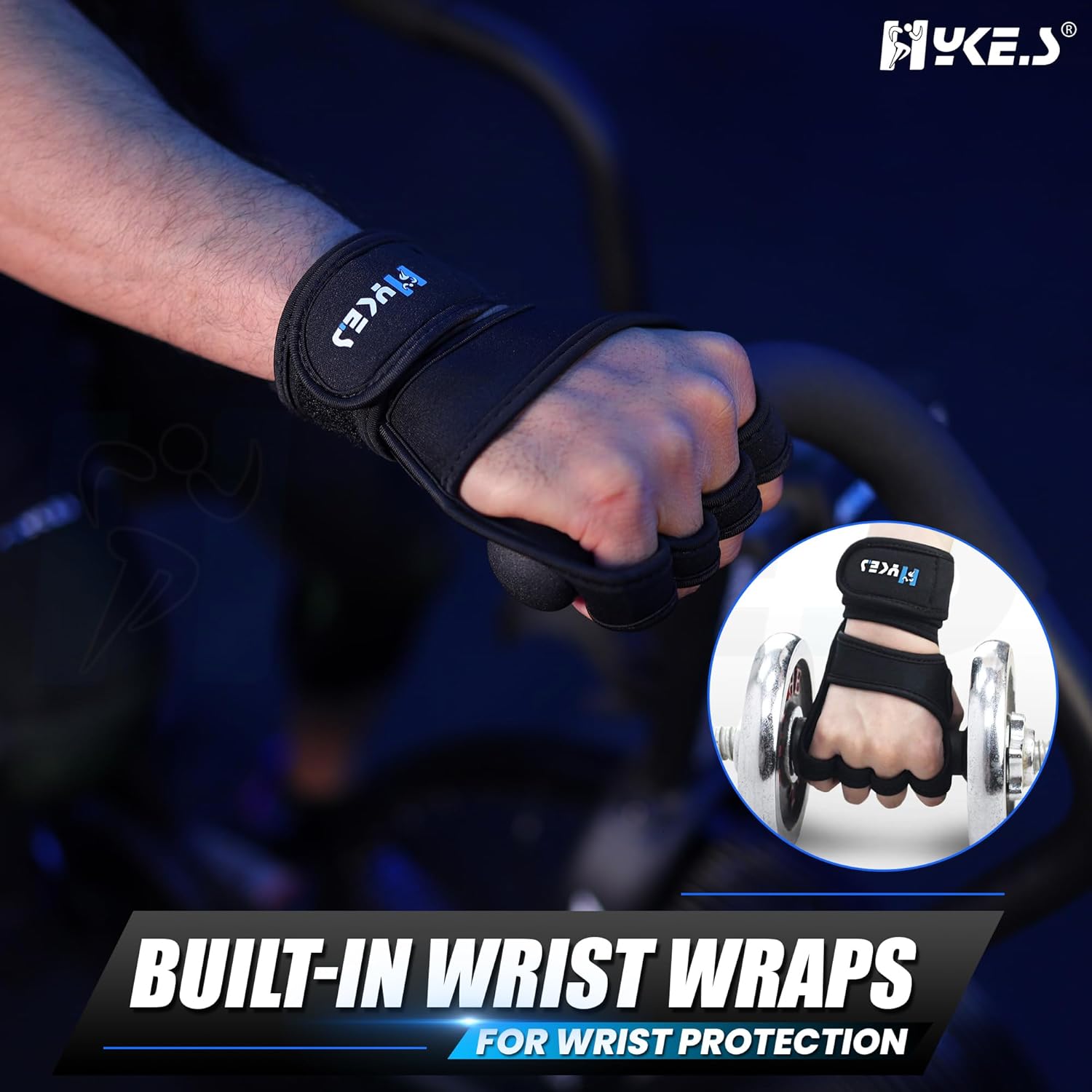 Hykes Gym Gloves – Weight Lifting Hand Grips with Wrist Wrap Support – Workout, Excercise, Fitness, Training, Powerlifting – Men and Women (Large, Neoprene, Black)