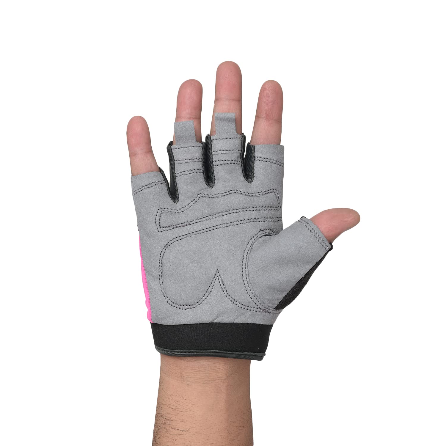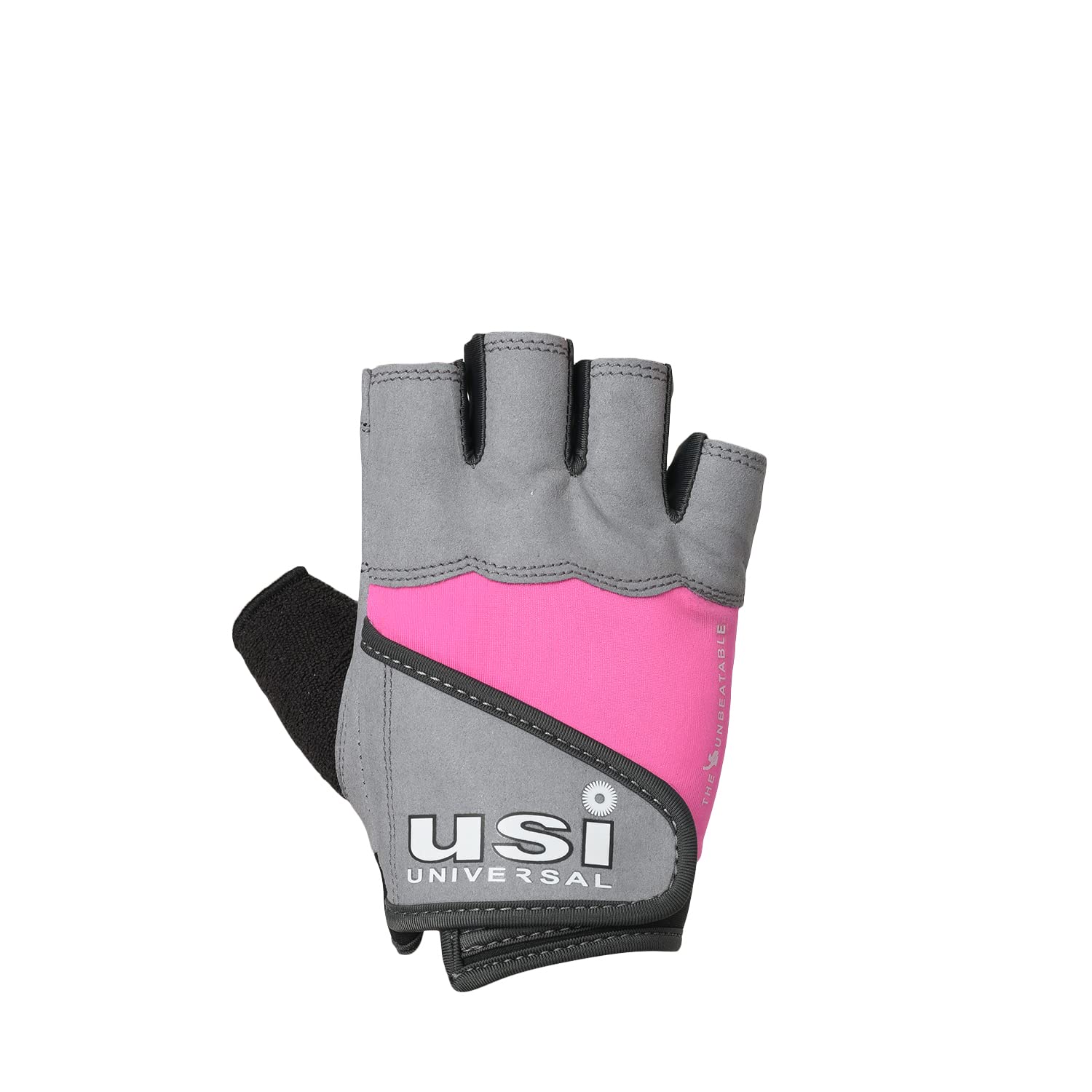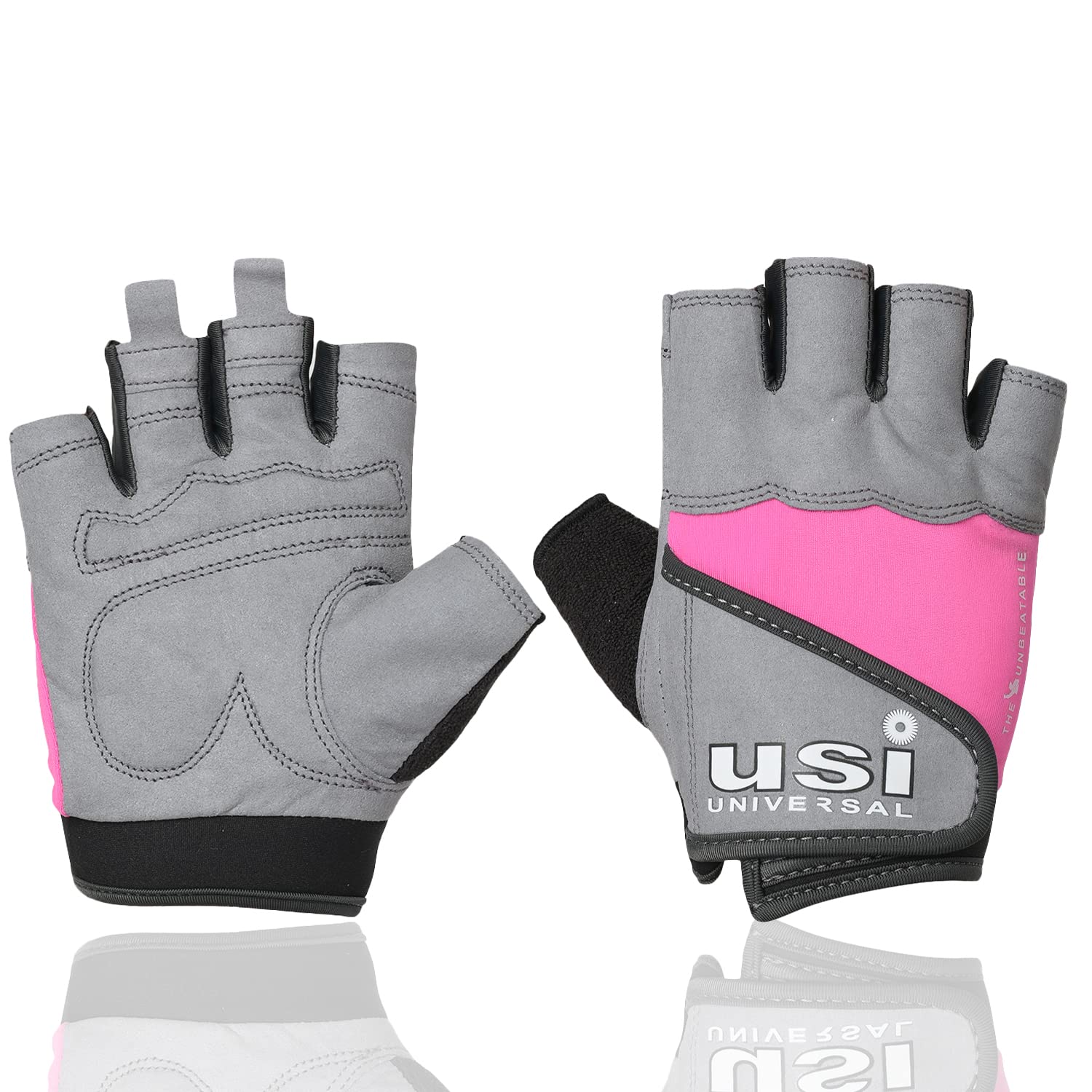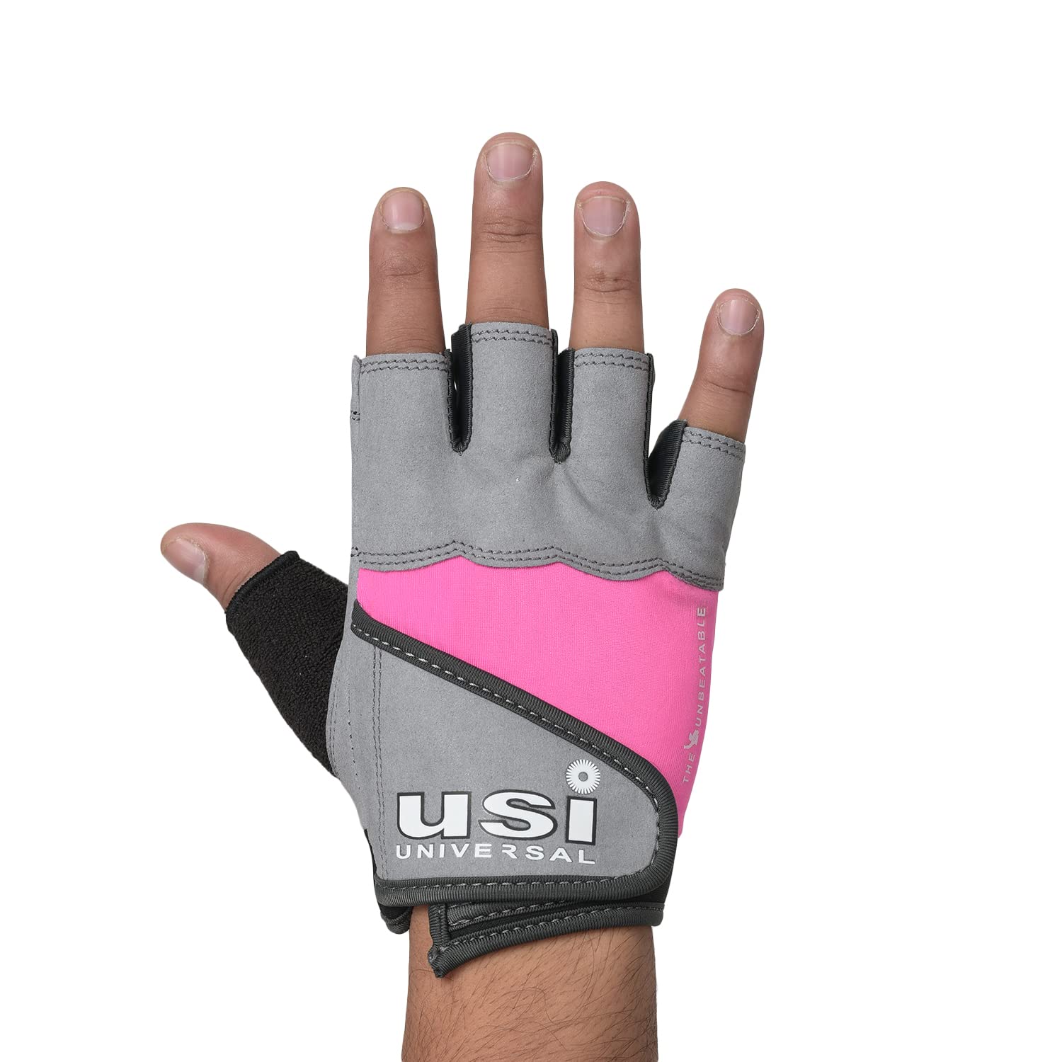USI UNIVERSAL THE UNBEATABLE 733Q Queen Fitness Gym Gloves, Workout Powerlifting Gloves, Microfiber, Polyester, Elastane, Foam Construction, Padded, Contoured Wrist Strap (Small, Grey/Pink)