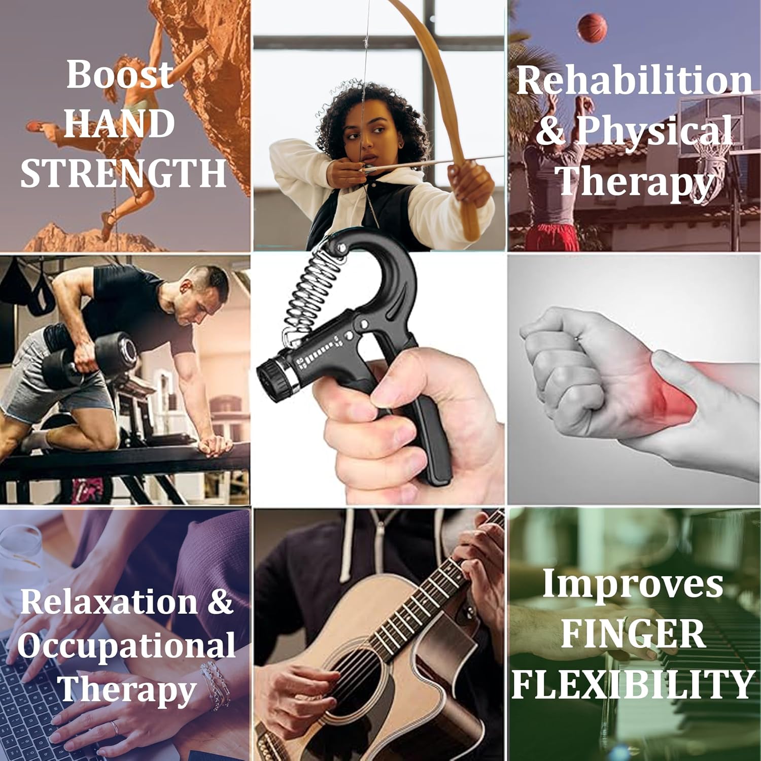 ADJUSTABLE RESISTANCE FROM 5 TO 60 KG – Customize your grip workout by easily twisting the resistance knob from 5 kg to 60 kg. Perfect for all fitness levels—beginners to pros—and suitable for men, women, teenagers, and seniors. Ideal for adjustable grip strengthener, hand gripper for muscle training, wrist exerciser tool.
