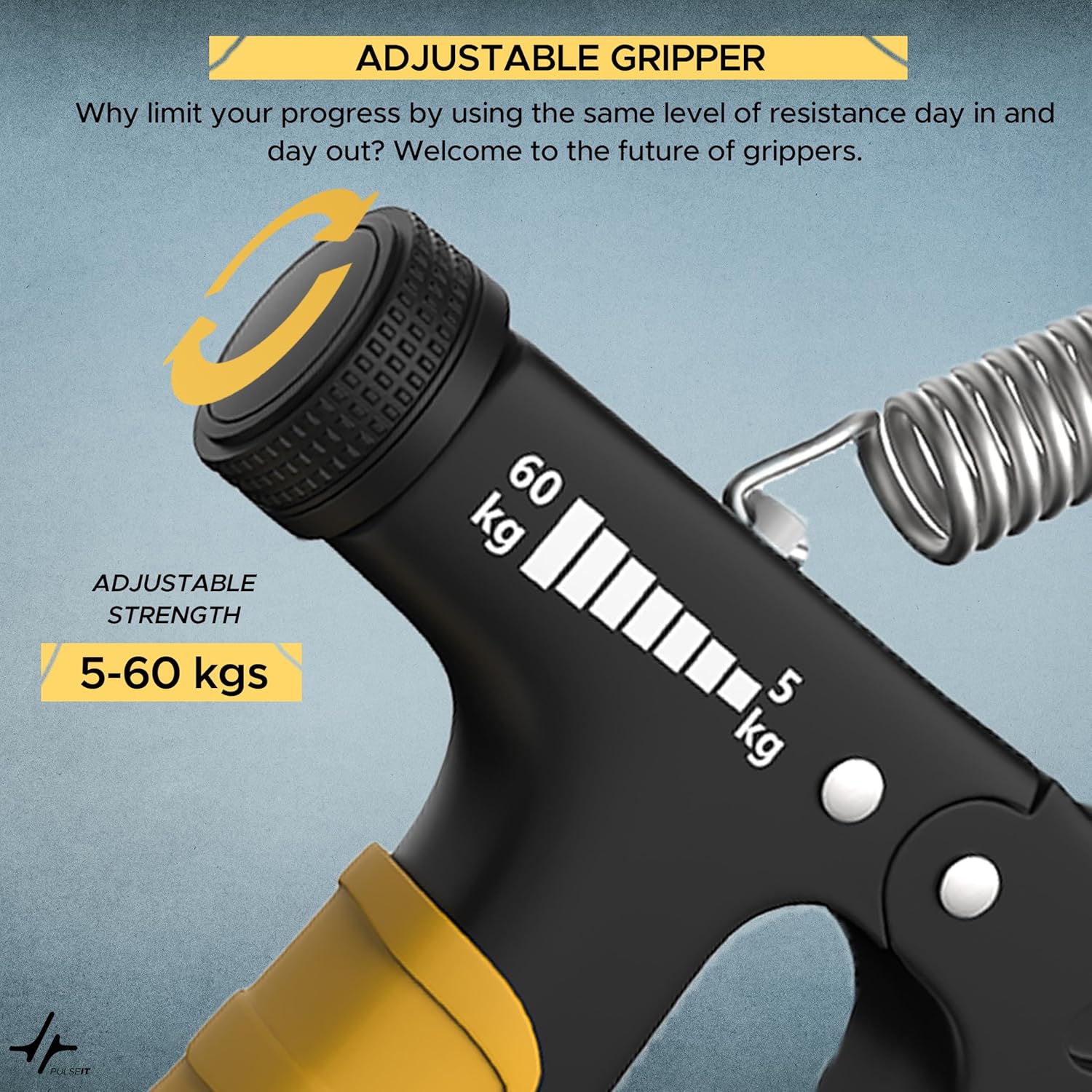 PulseFlex Adjustable Hand Gripper 5-60 kg for Grip Strength, Forearm, Wrist & Finger Exercise Non-Slip, Durable Hand Grip Strengthener for Men, Women, Athletes, Fitness, and Injury Recovery (Hand Gripper)