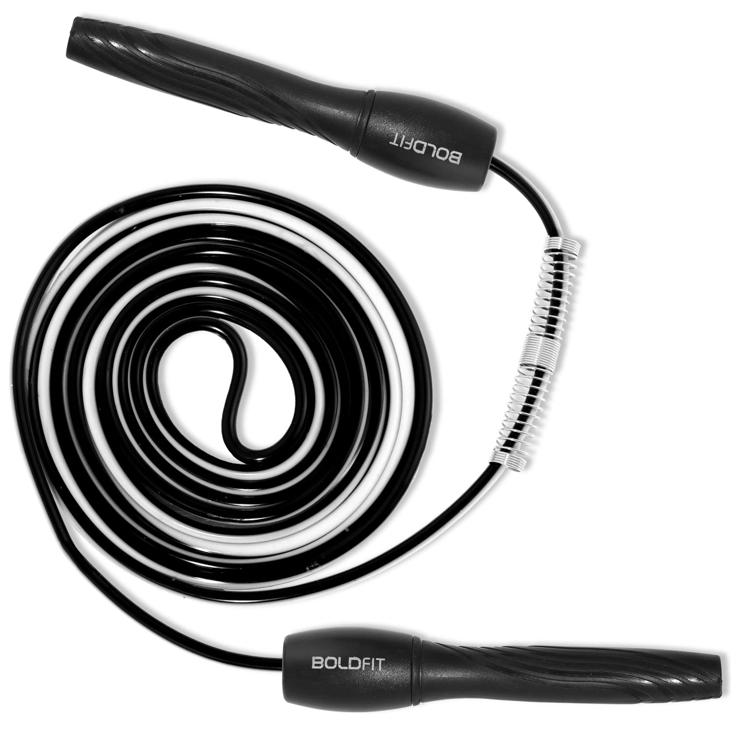Boldfit Skipping Rope for Men and Women Jumping Rope With Adjustable Height Speed Skipping Rope for Exercise, Gym, Sports Fitness Adjustable Jump Rope, Polyvinyl Chlorine (PVC), Black-White
