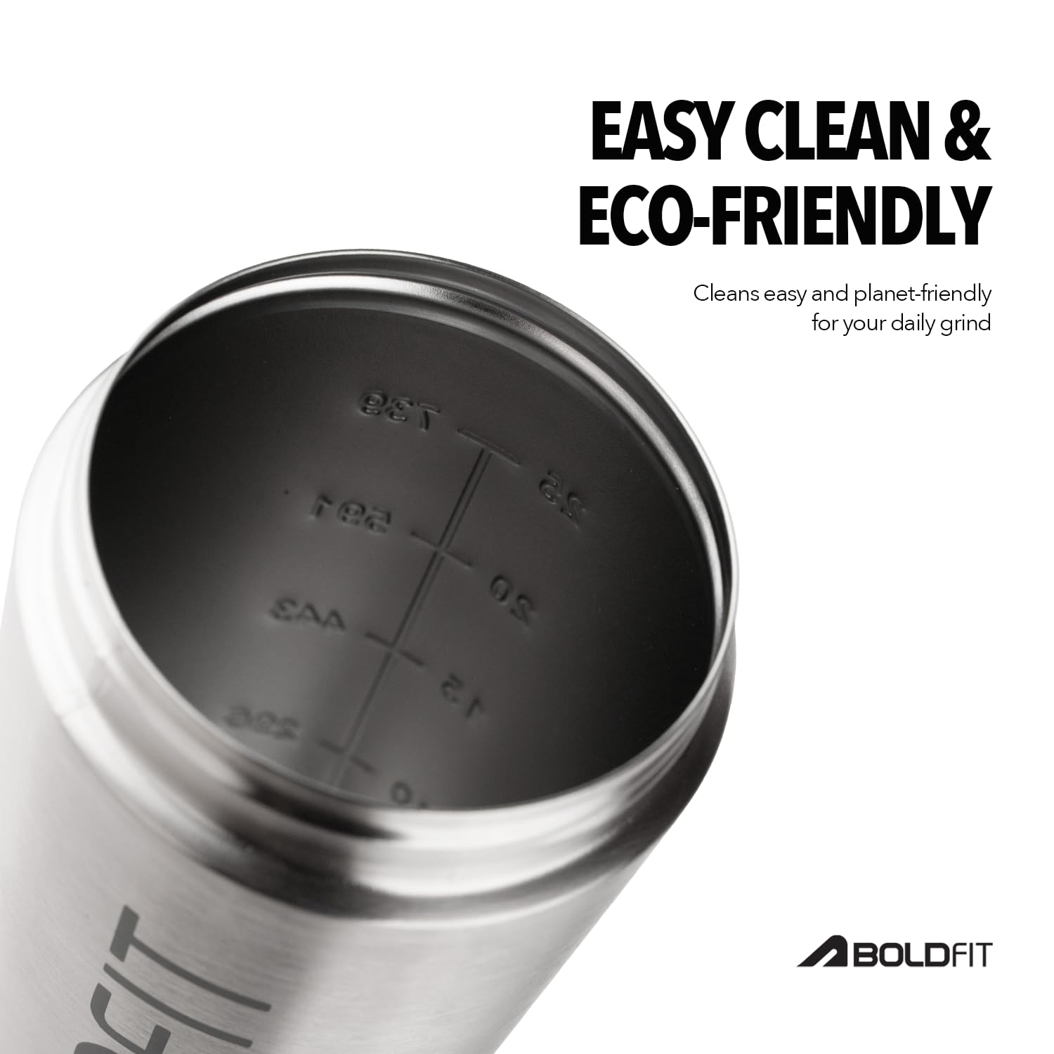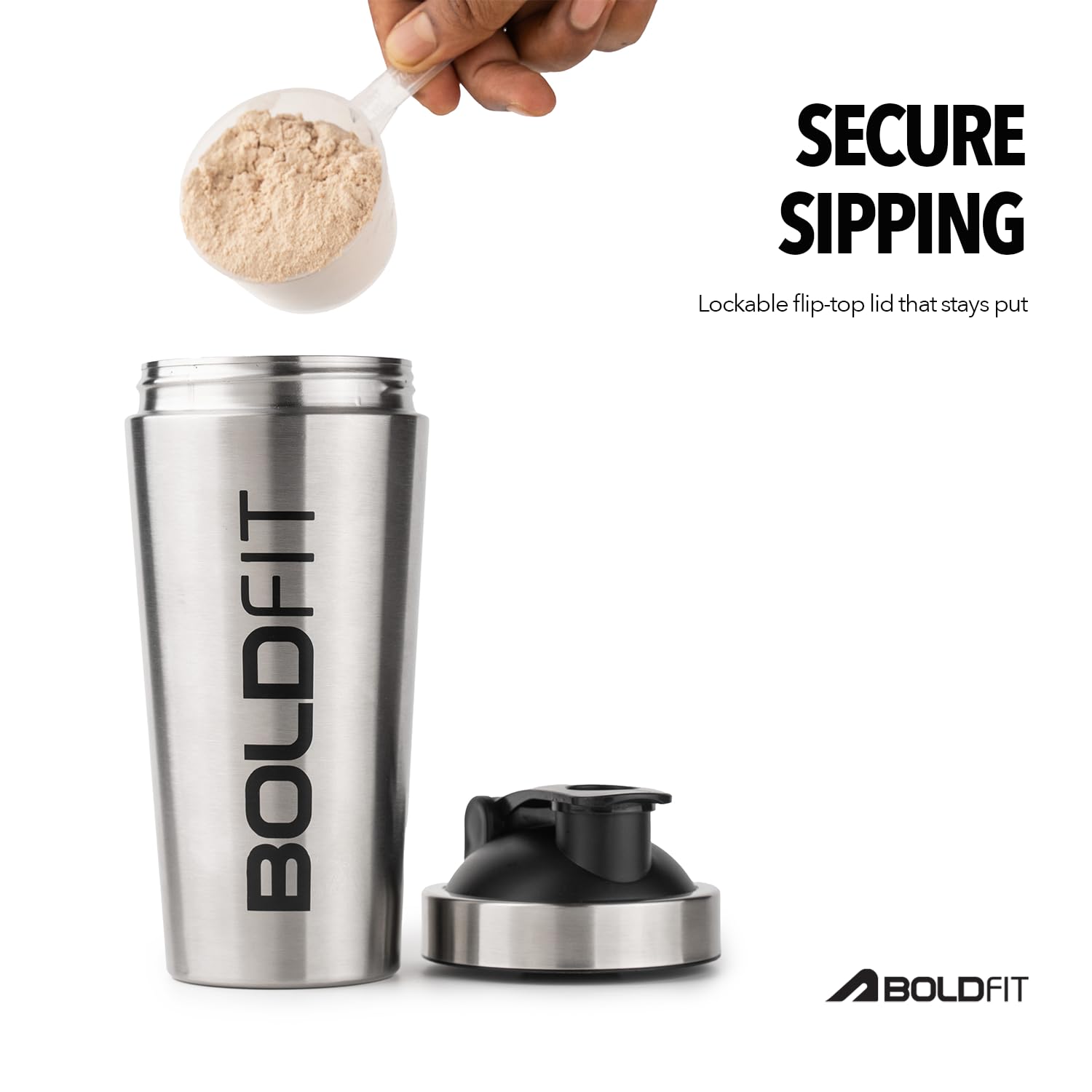Boldfit Stainless Steel Gym Shaker Bottle Shaker Bottles for Protein Shake 100% Leakproof Guarantee Protein Shaker Sipper Bottle Pre Workout Steel Shaker With Measurement 700 ml Silver