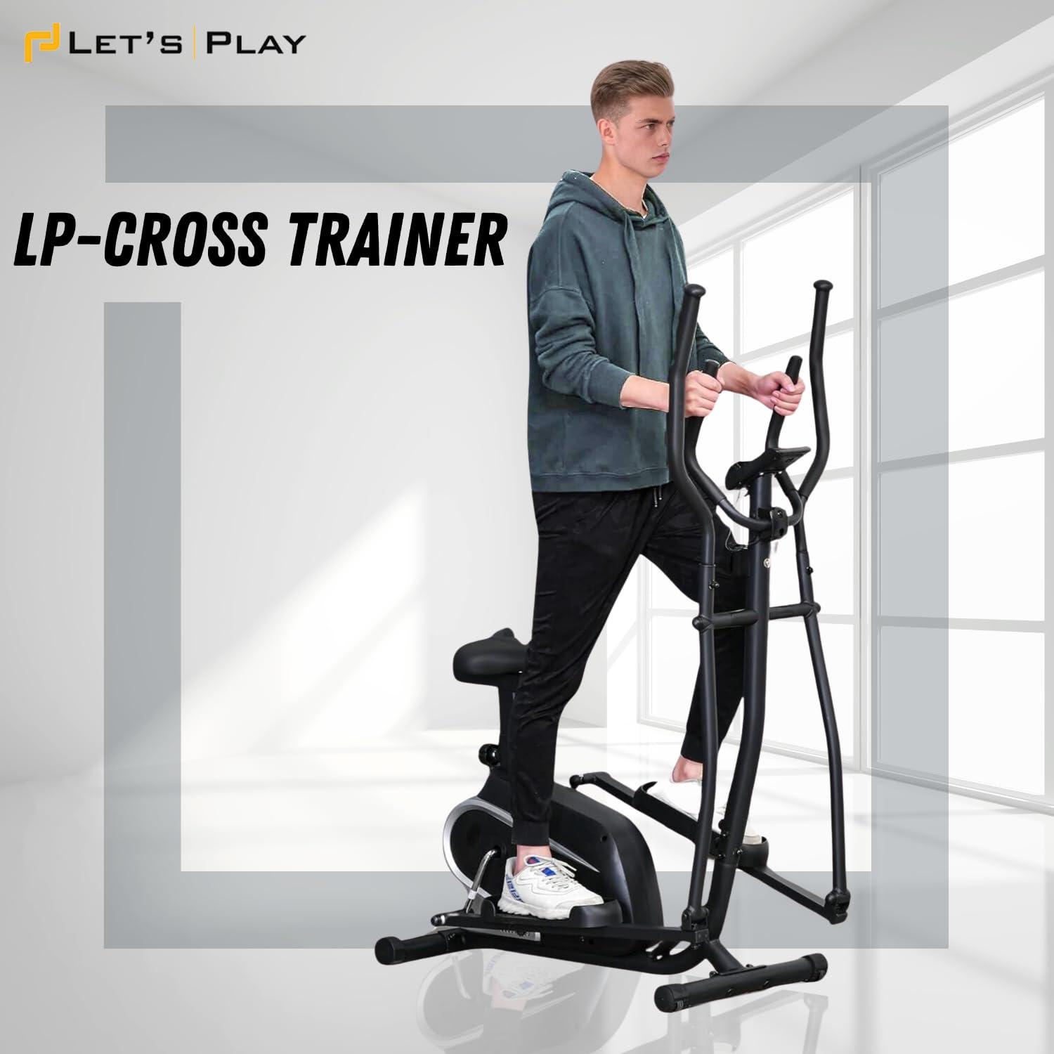 Let’s Play® 2 in 1 Elliptical Cross Trainer for Home Gym Full Body Workout Training Gym Cycle Exercise Bike with Adjustable Seat I 8 Magnetic Resistance Level I 5kg Flywheel I Max 100kg Weight