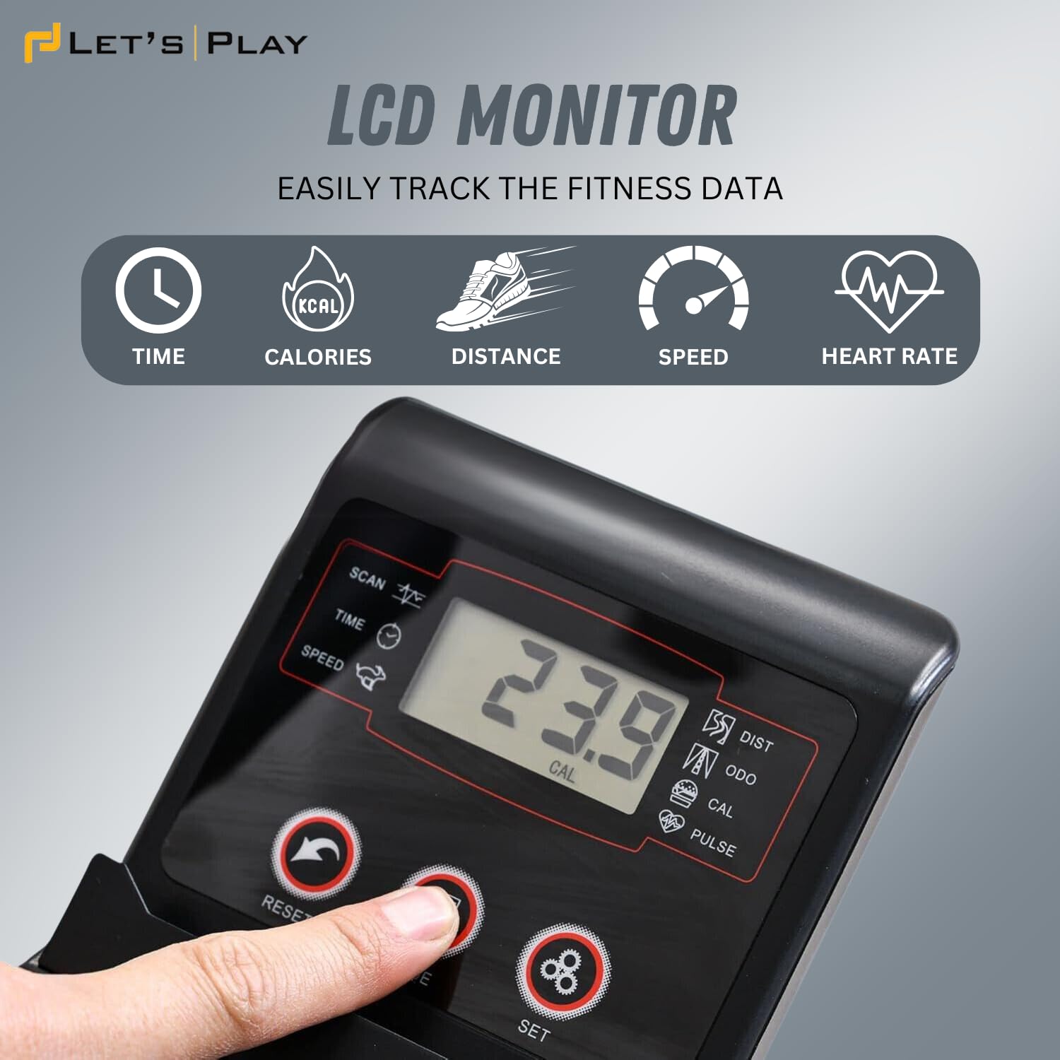 Large LCD Monitor For Performance Tracking: The Integrated Lcd Display Tracks Real-time Data Like Speed, Distance, Time, Heart Rate, And Calories Burned, Helping You Monitor And Optimize Your Progress.