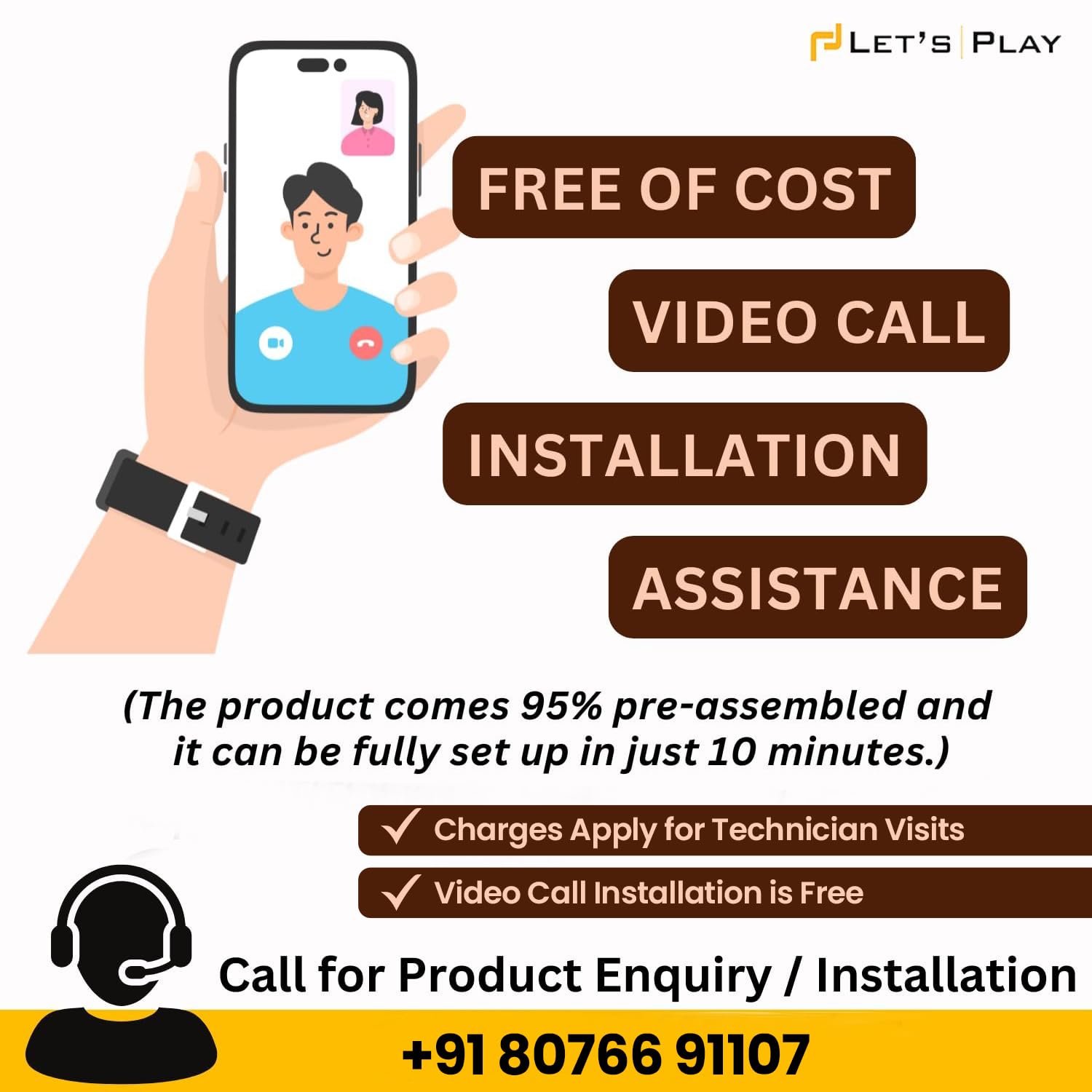 We offer free of cost Video Call assistance to help you with the installation process. The product comes 95% pre-installed, so you’ll only need to tighten a few nuts and screws to complete the setup