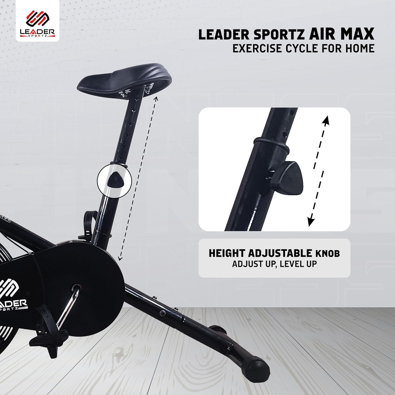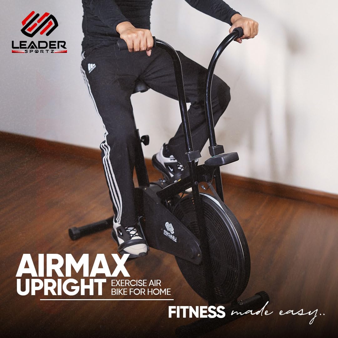 Airmax Upright Exercise Air Bike Cycle for Home | Gym Cycle with Stationary Handle | Adjustable Cushioned Seat Exercise Bike for Workout | Non-Slip Pedals | Max Weight 100 Kg – Black