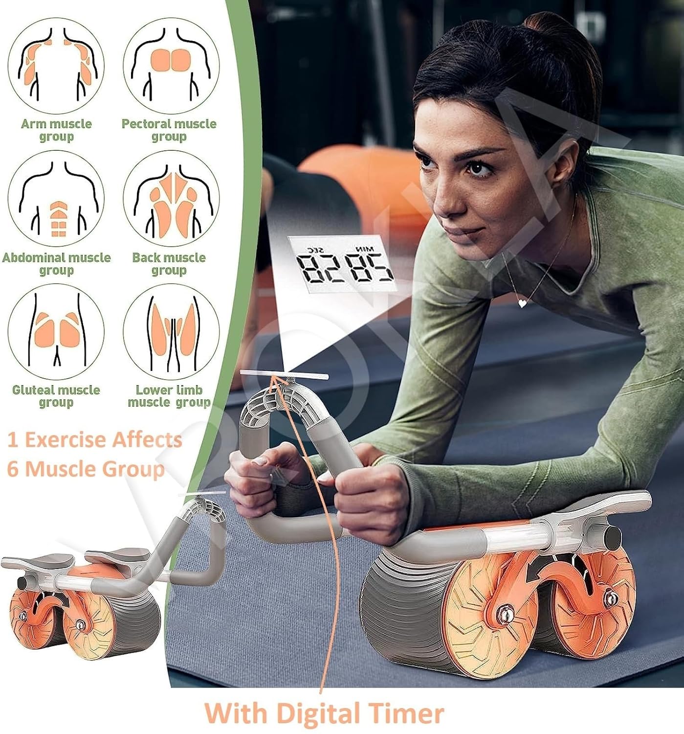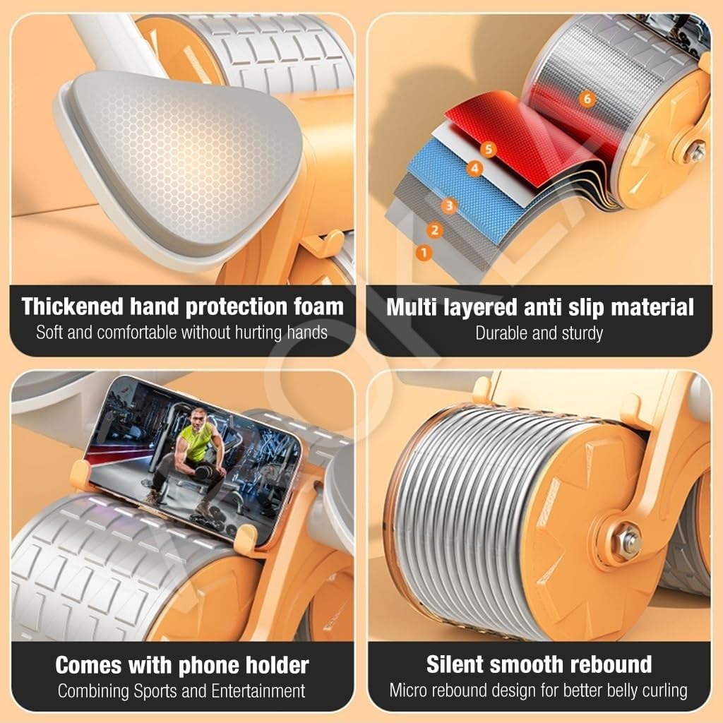 VROKLA Abs Roller for Men & Women Professional Ab Roller Automatic Rebound With Elbow Support, Timer, Mobile Holder, Knee Mat Abs Workout Equipment