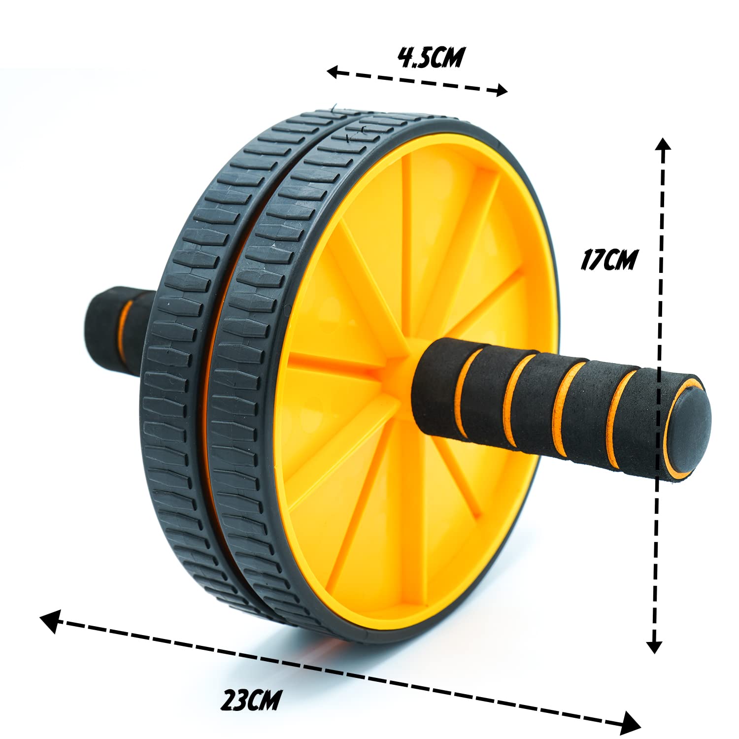 QUALITY AND DURABILITY: The ab roller is constructed of rubber wheel treads and textured handles for a secure grip and added traction. The heavy-duty plastic construction offers superior durability and support with an exercise wheel.