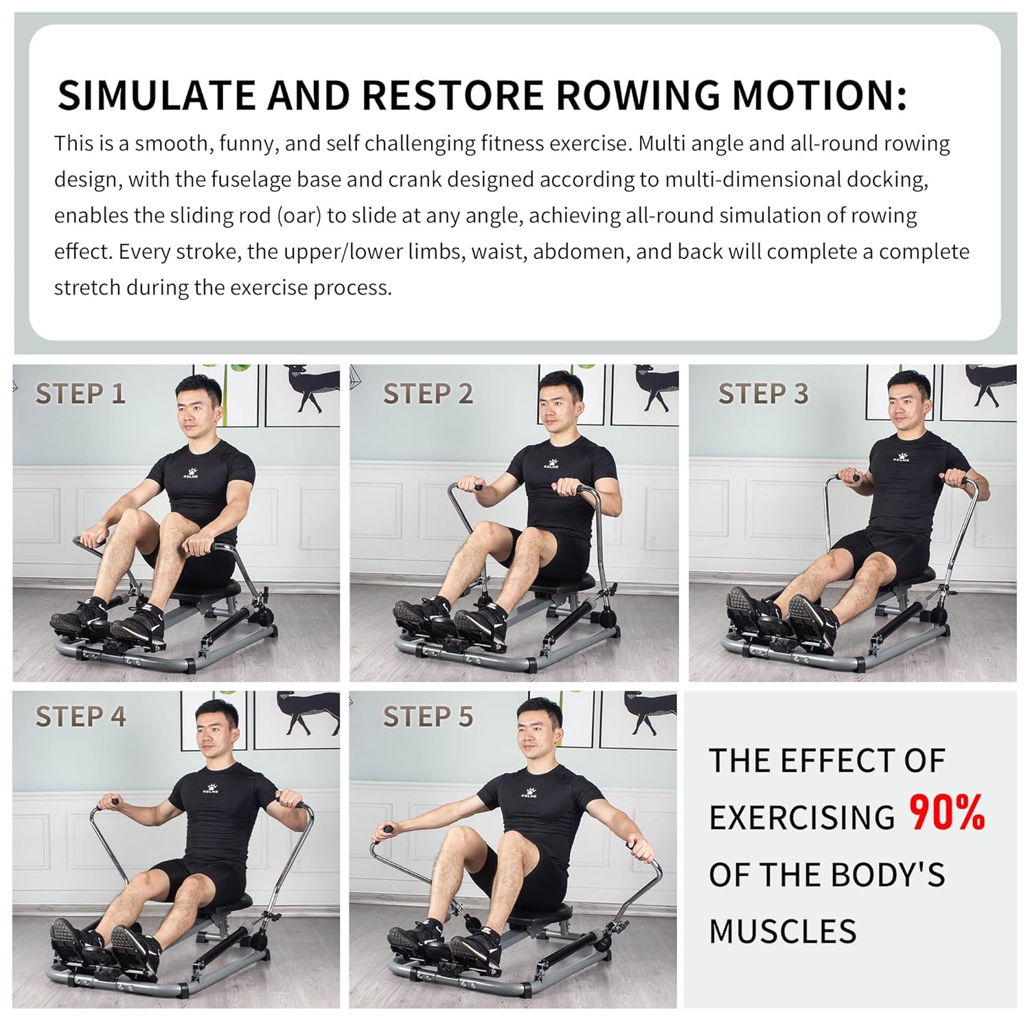 【Full Body & Low Impact Workout】Leikefitness rowing machine provides a low-impact,efficient full-body exercise,engaging core muscles including back, legs, arms, abs and glutes.Full motion arms allows for larger range of motions for the shoulders. Full motion arms allows for larger range of motions for the shoulders.