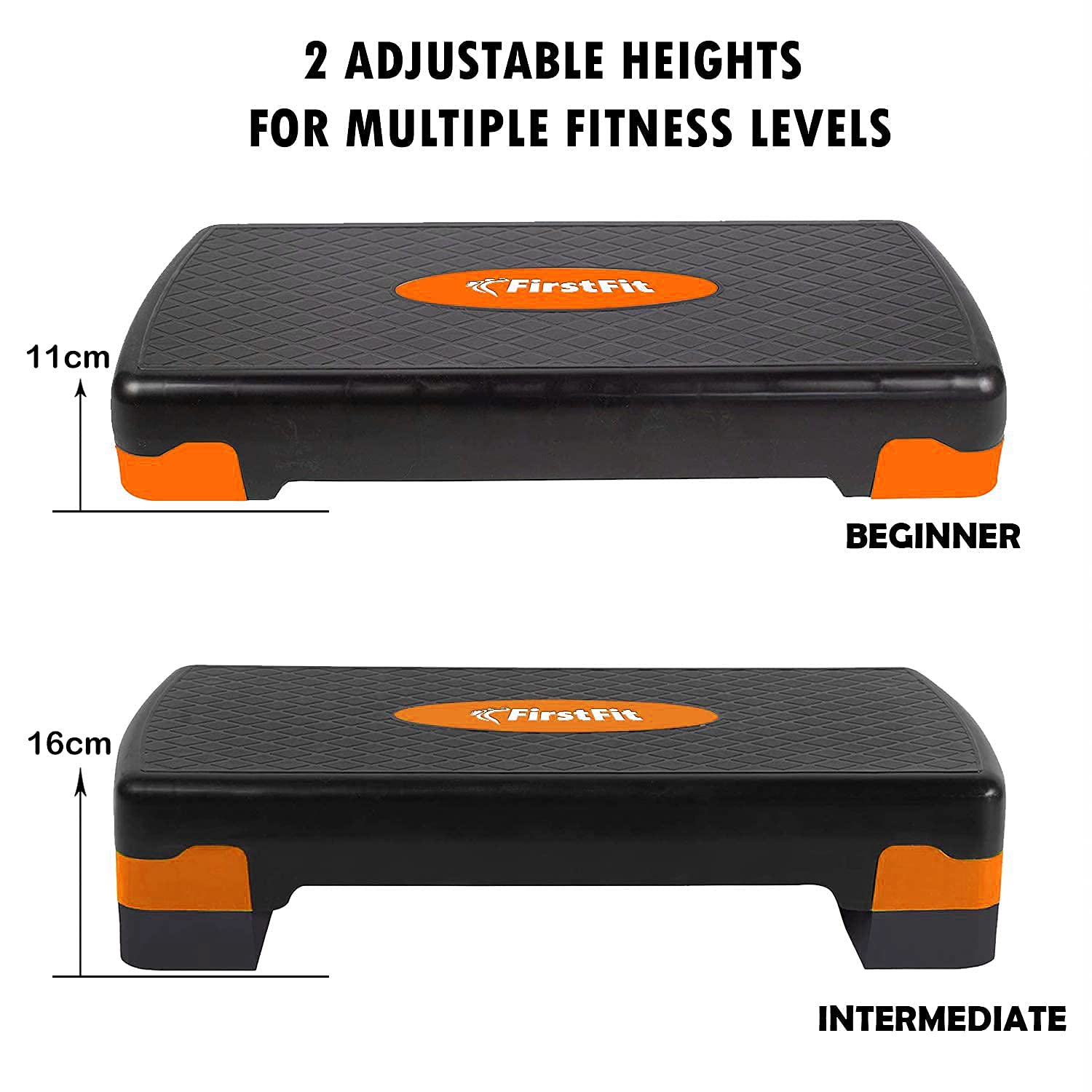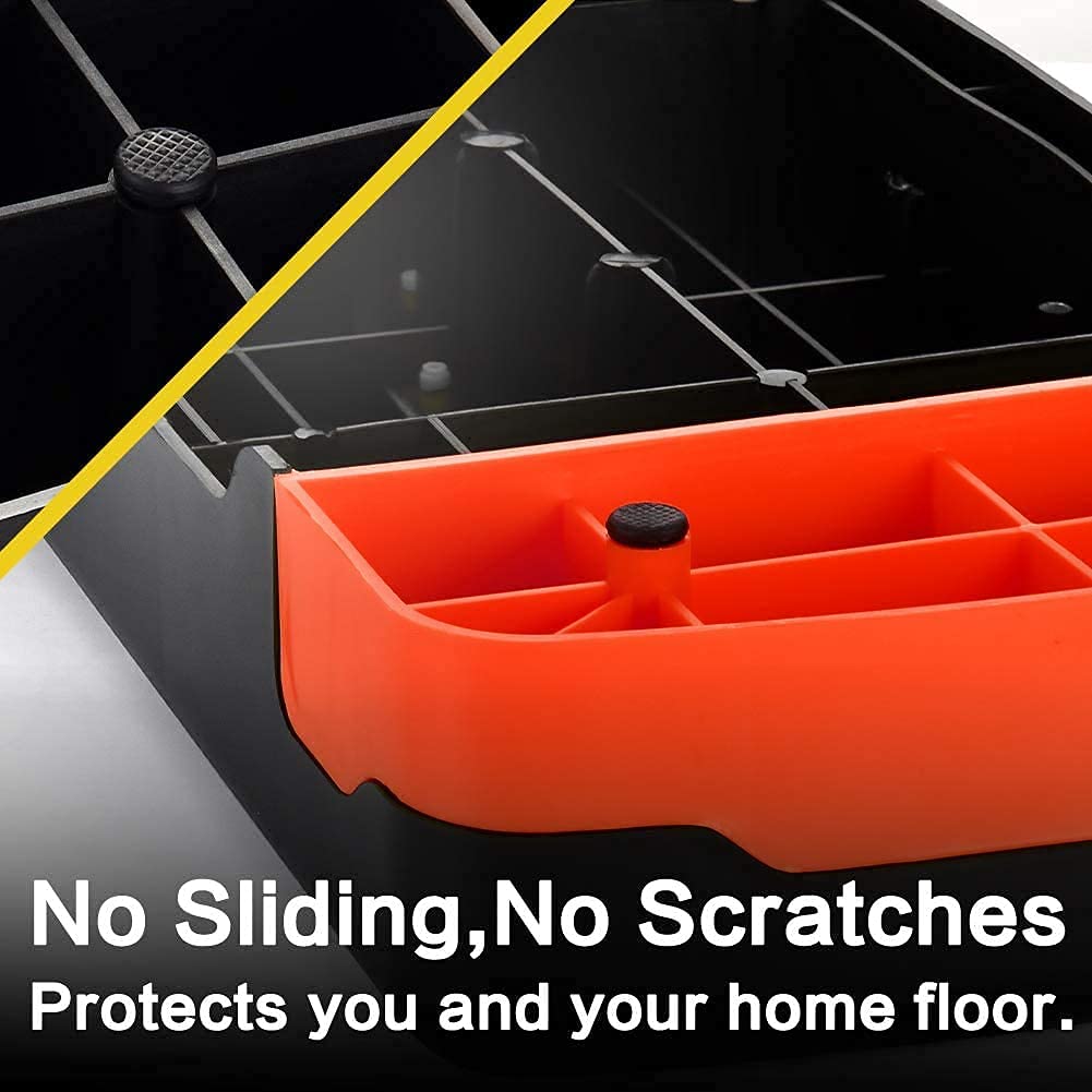 [STURDY, DURABLE & NON-SKID]: The stepper is constructed with durable plastic material with long-lasting properties. The large and heavy-duty platform holds its maximum weight limit of 440 pounds, so you can take every step in confidence. Non-skid feet on each riser prevent sliding and will not leave scratches and marks on your floor.