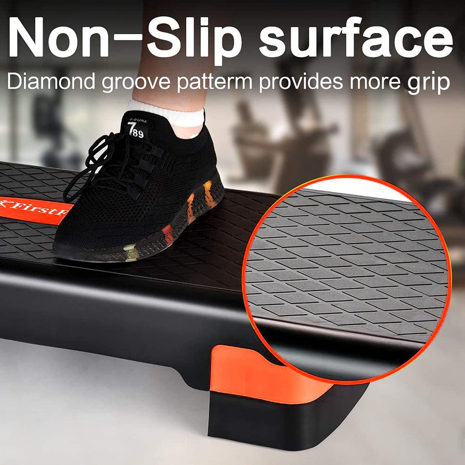 The grooved, non-sticky surface of the stepper adds perfect gripping and absorbs the shock, which prevents you from sliding or slipping and allows you to focus on your positioning, so you can feel safe as you move from the floor to the step.