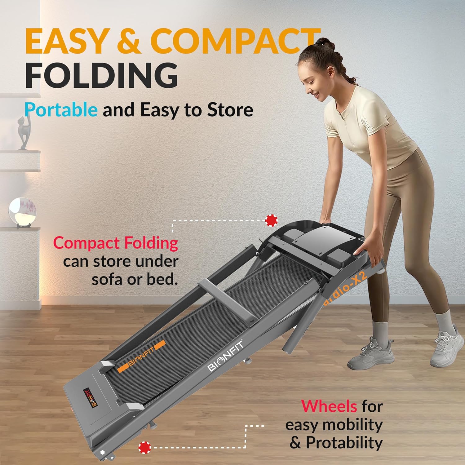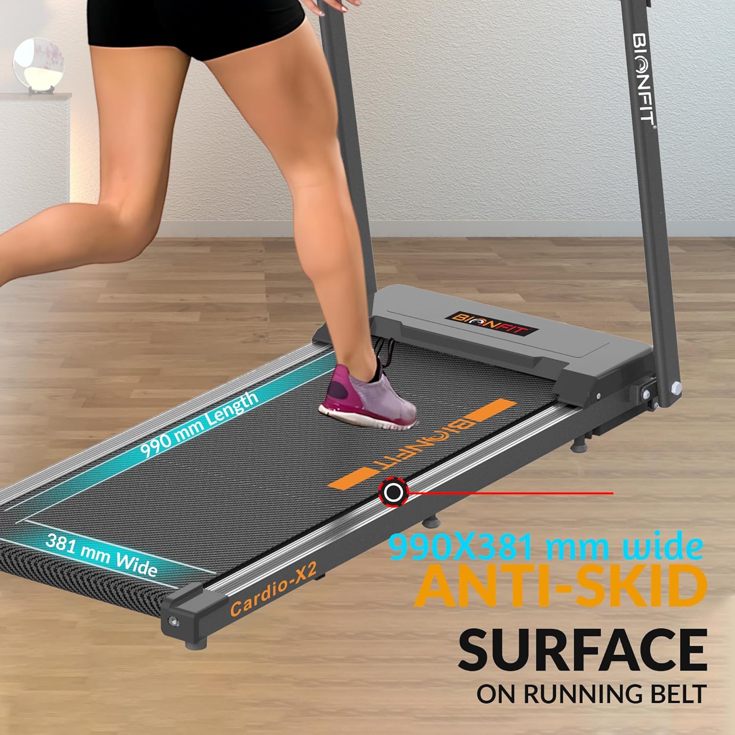 BIONFIT Treadmill Cardio-X2 for Home Gym Fitness | 3 HP Peak, DC Motorized Foldable Running Machine | Manual Incline Walking pad for Workout with 3 Years Warranty and DIY Installation