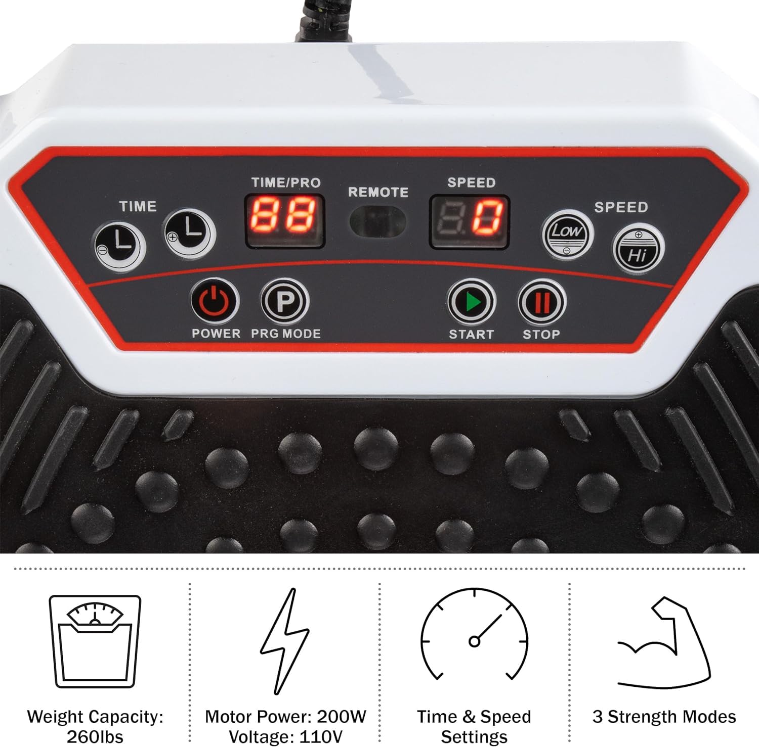 Remote control and digital display: track time, speed, intensity and calories burned on the fully digital LCD display. Adjust the intensity of the vibration, training time, type of vibration and automatic programs with the fully functional remote control.