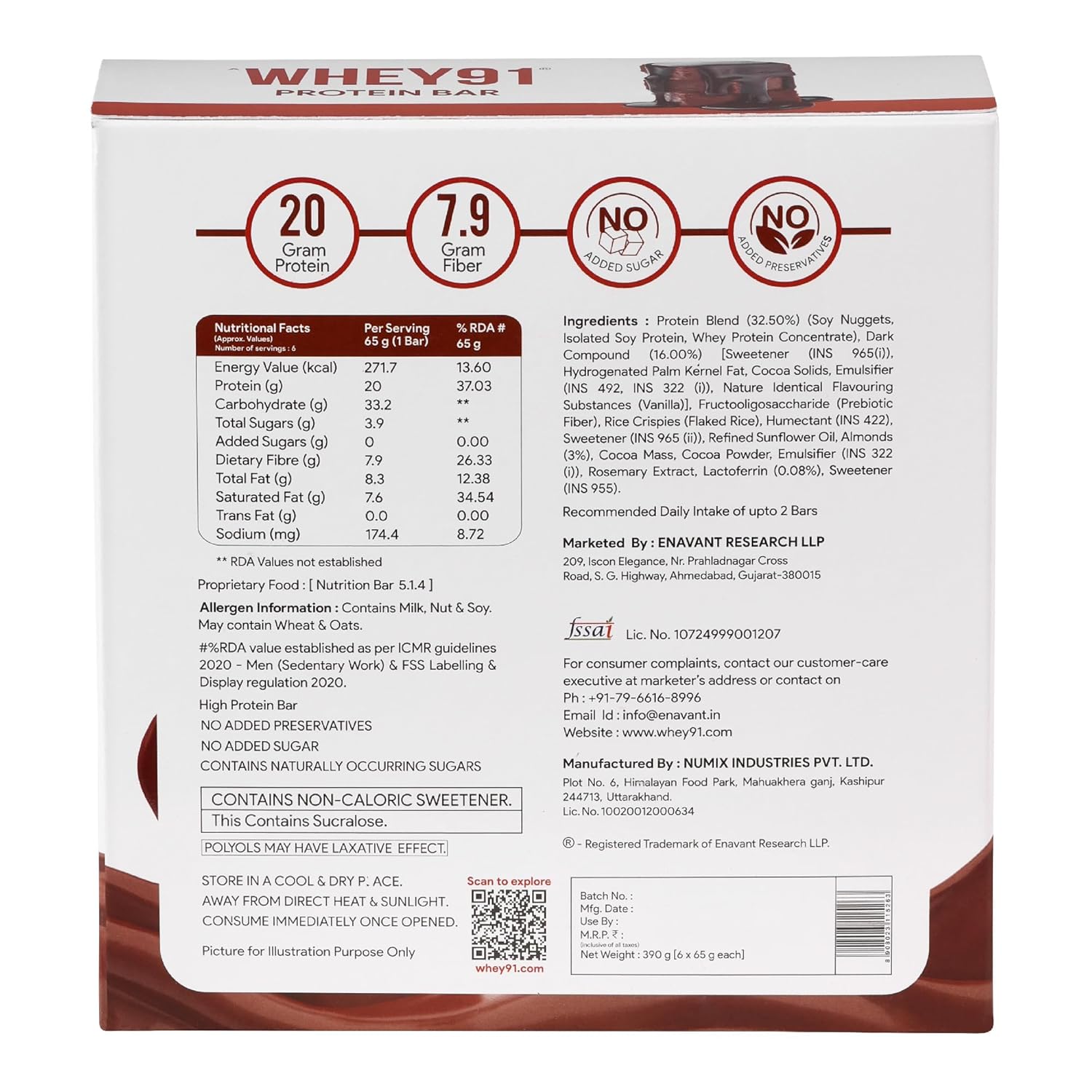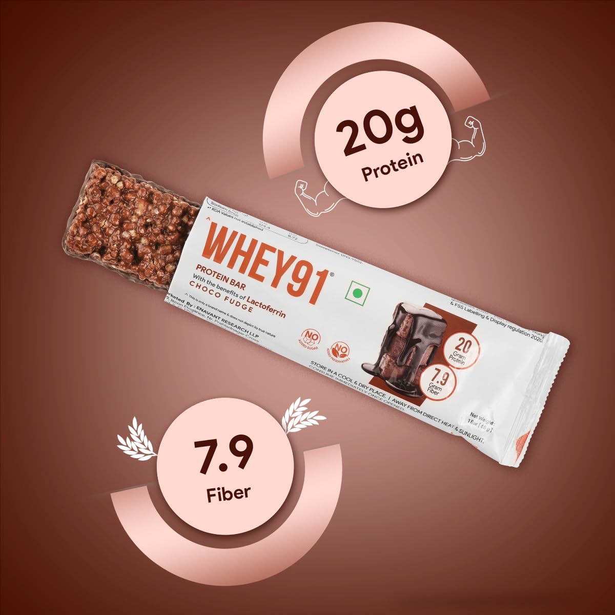 ENERGY, FITNESS, IMMUNITY: Whey91 Protein Bar offers 20g of complete Premium Gold Standard Protein and 7.9g fiber to sustain energy, fitness & immunity for a moderate-intensity activity and lifestyle.