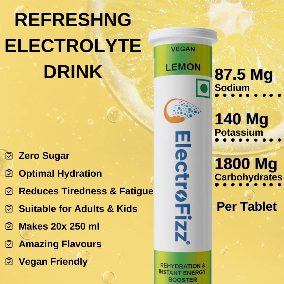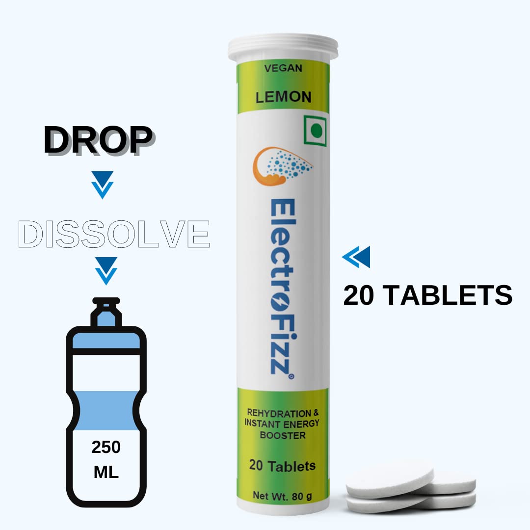 Electrolyte Energy Drink for Workout, Sports Drink for Men and Women, Energy Supplement, Instant Hydration - 40 Effervescent Tablets (Pack of 2 tubes) -Lemon Flavour, 2 count, 20 capsules - Fityodha.com