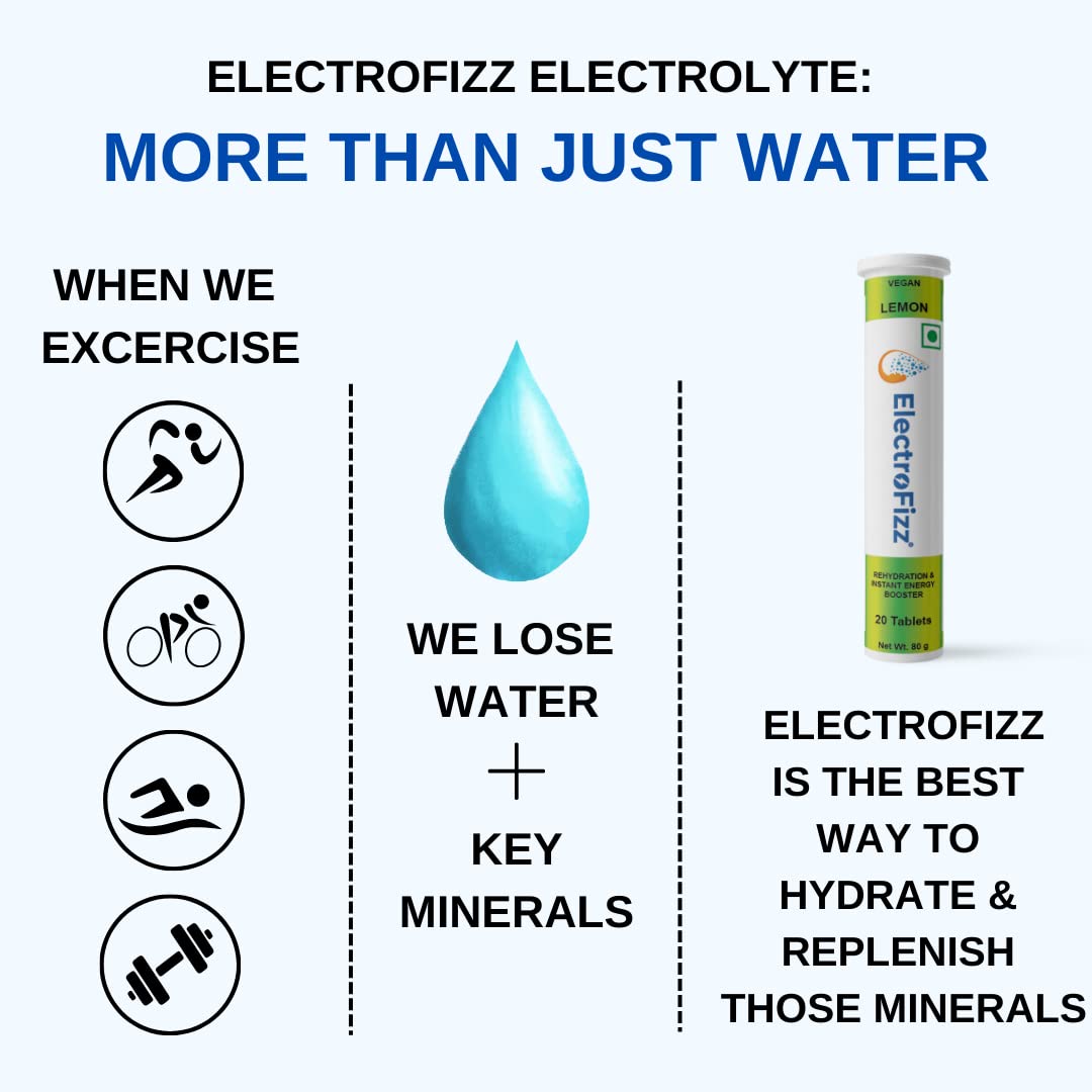 HYDRATE. SUSTAIN. PERFORM. ElectroFizz Electrolyte Tablets are packed with essential electrolytes, making it a powerful hydration supplement & muscle recovery support. Our refreshing low calorie and sugar free formulation makes it easy to stay hydrated throughout the day. There’s no better Electrolyte Supplement.