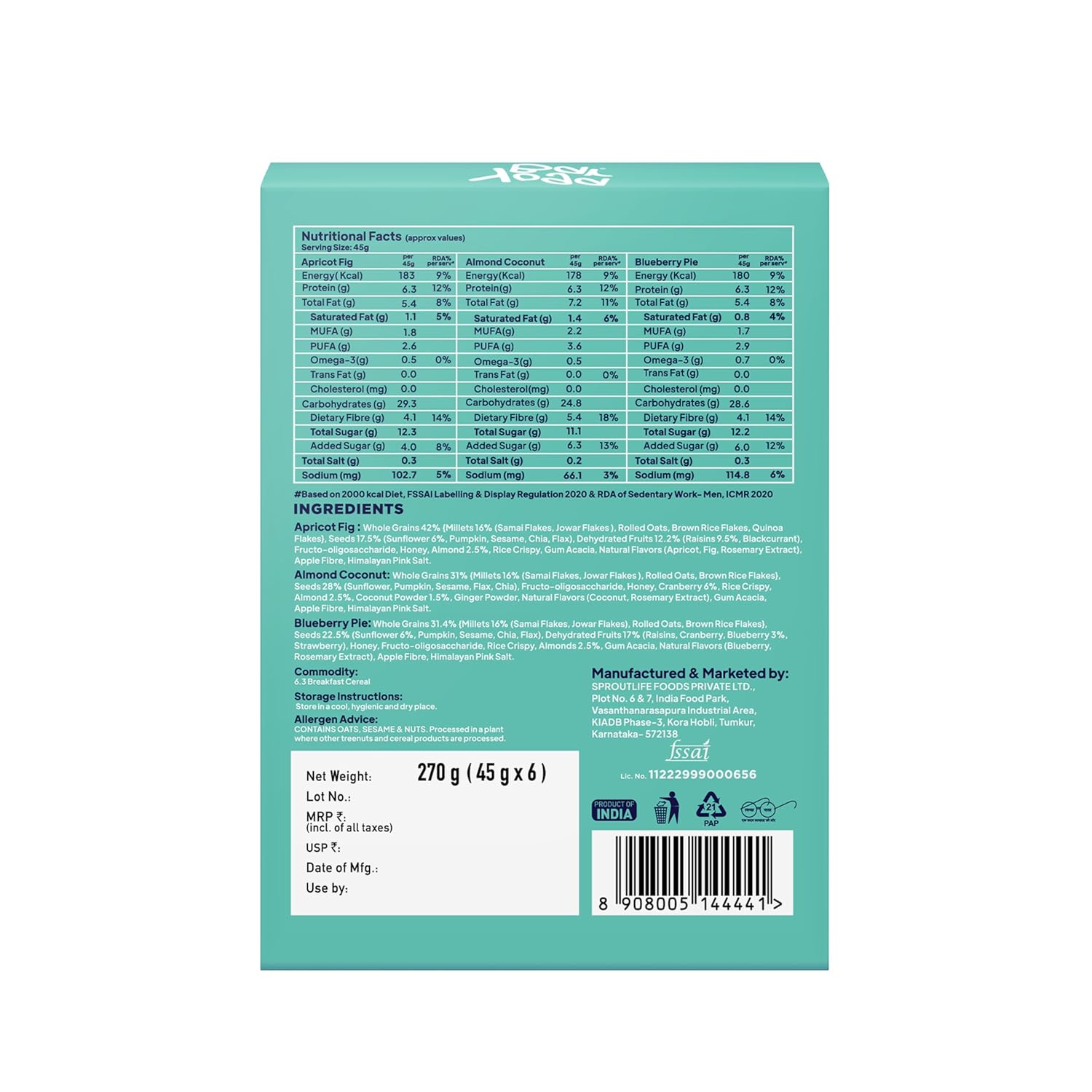 Be the first to review “Yogabar Breakfast Bars Variety Pack | Daily Protein Snack | High Energy & Nutrition Bars | 8g Protein & 7g Fibre Protein Bars | Pack of 6 Protein Bar x 45g | No Preservatives” Cancel reply