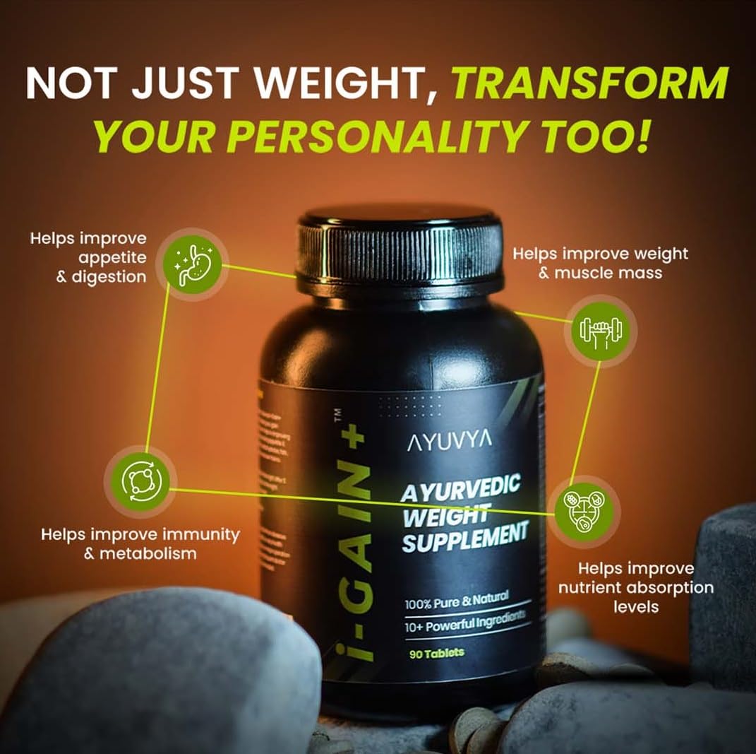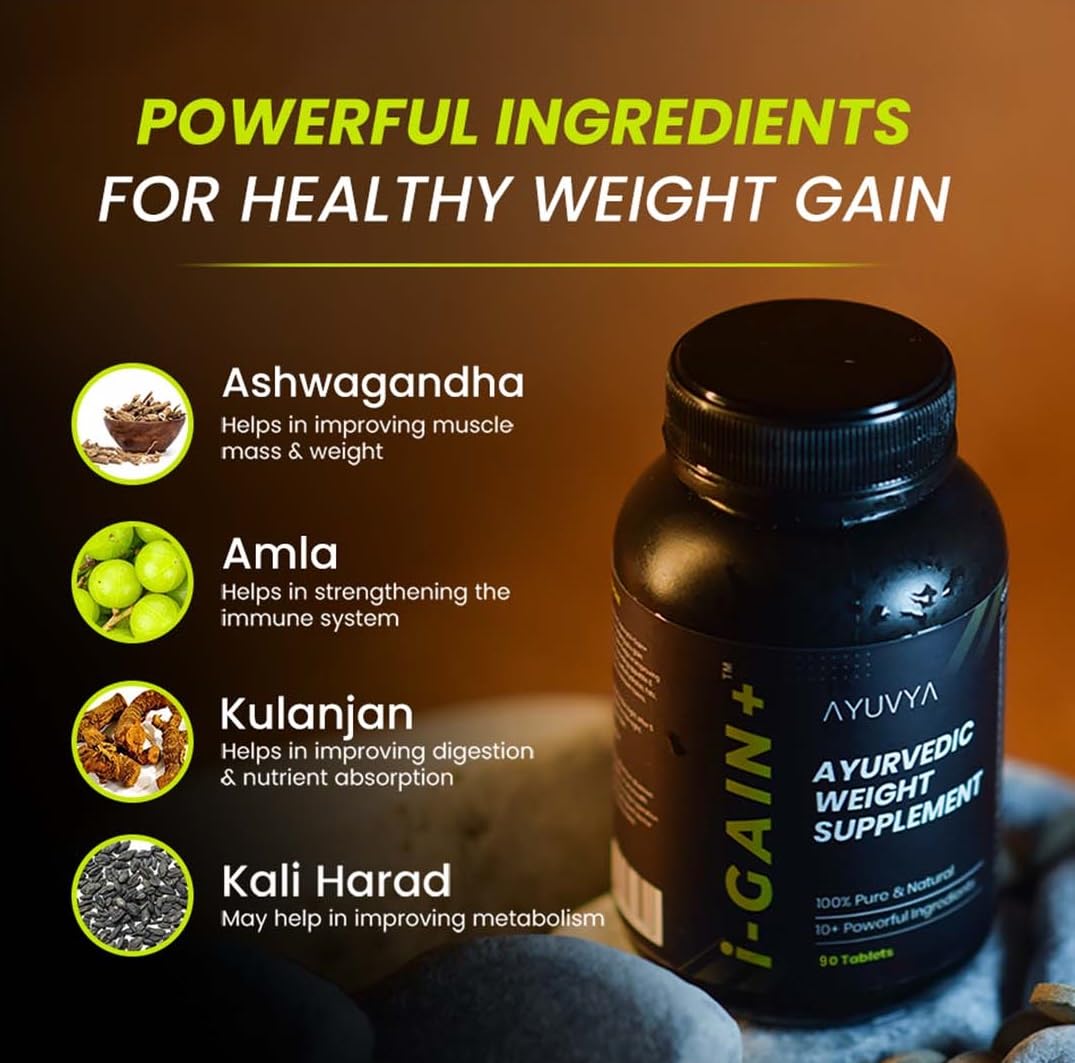 i-Gain+ 90 Tablets | New & Improved Formula | Ayurvedic Weight Gainer for Digestion & Muscle Mass | 100% Natural for Men & Women