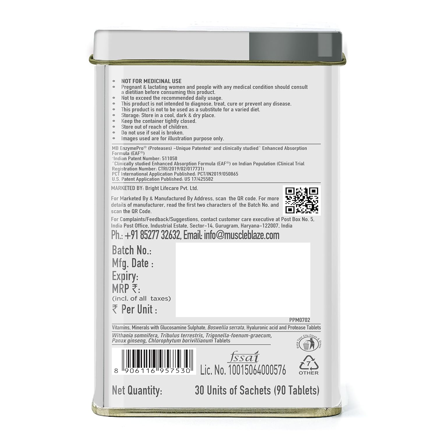 JOINT BLEND: When you are an advanced gym-goer, you have no room for joint discomfort, pain, or inflammation. MuscleBlaze Biozyme Daily Multivitamin for Men contains a joint blend that assists in mobility, flexibility and upkeeps the health of your joints