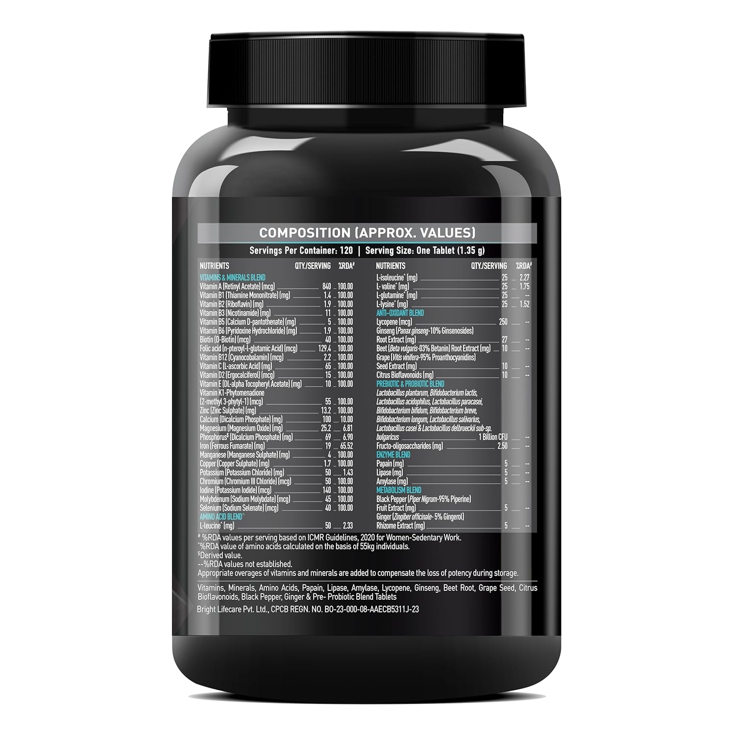 EVERLASTING ENERGY & STAMINA: Elevate your fitness & stamina with each dose of a multivitamin tablet. Formulated with vitamins & minerals, amino acid, prebiotic & probiotic, enzyme, antioxidant and metabolism blend to maintain optimum energy levels