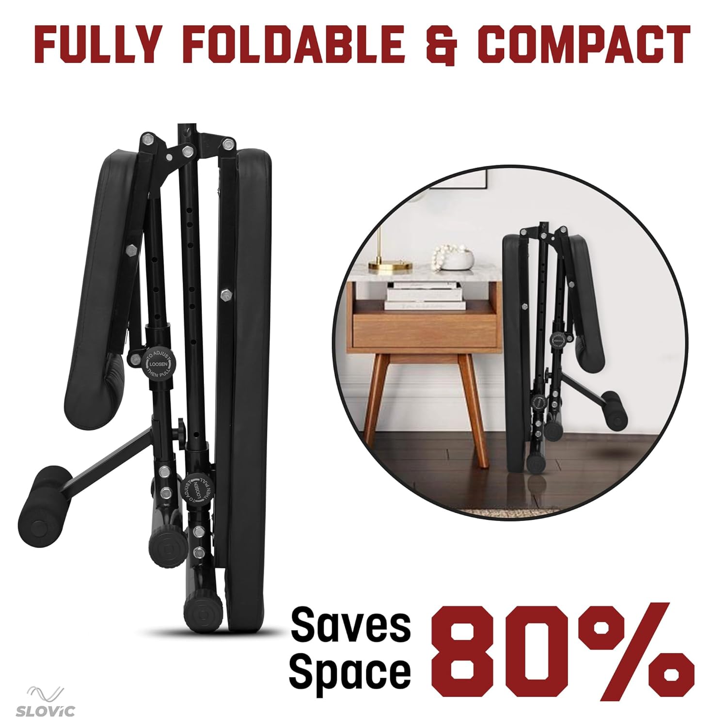 FOLDABLE SPACE-SAVING DESIGN: Folds easily in 5 seconds, Slovic’s Foldable Bench is ideal for your home gym set-up as it saves space and can be tucked away under a bed, in corners or inside cabinets.