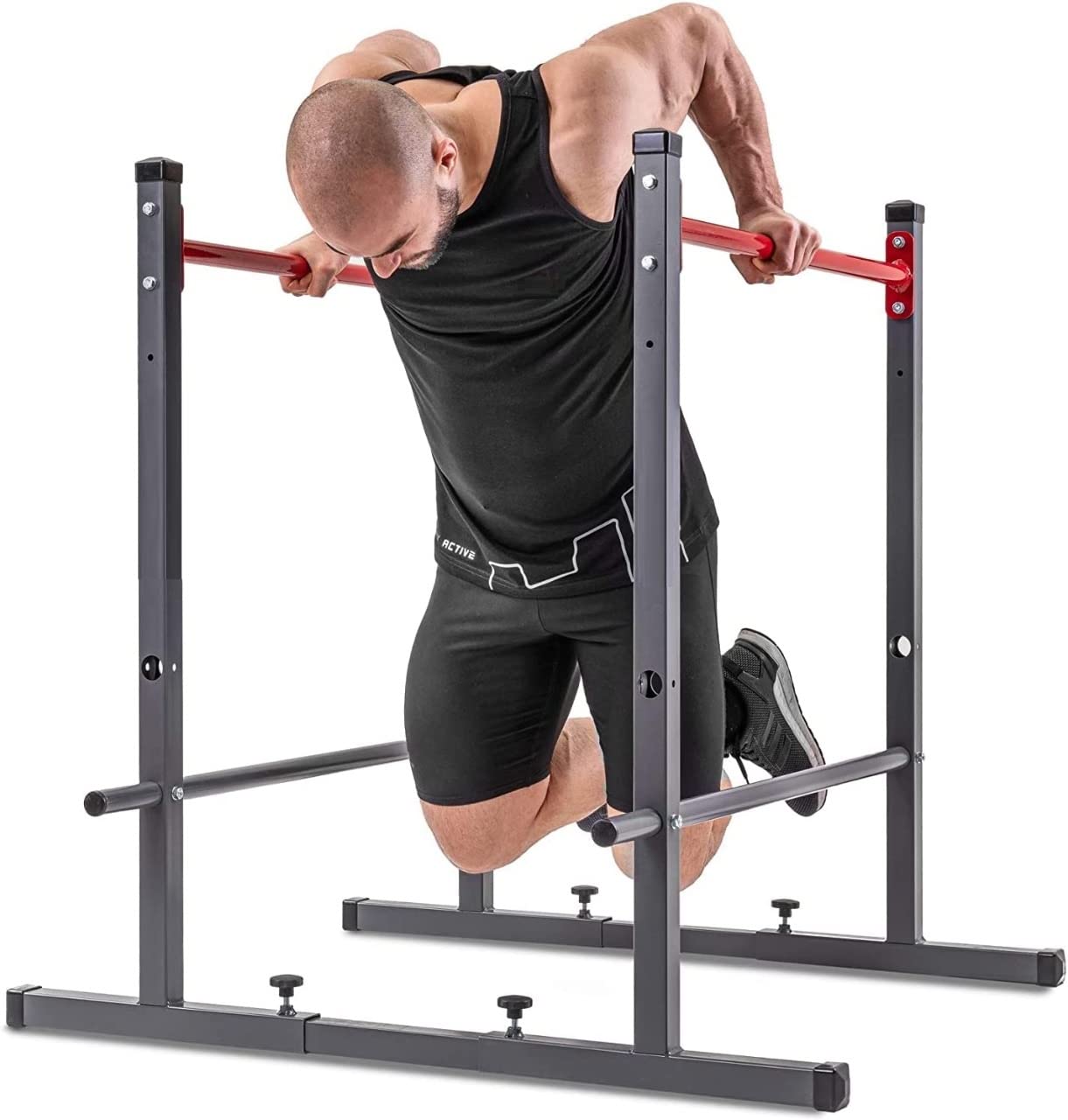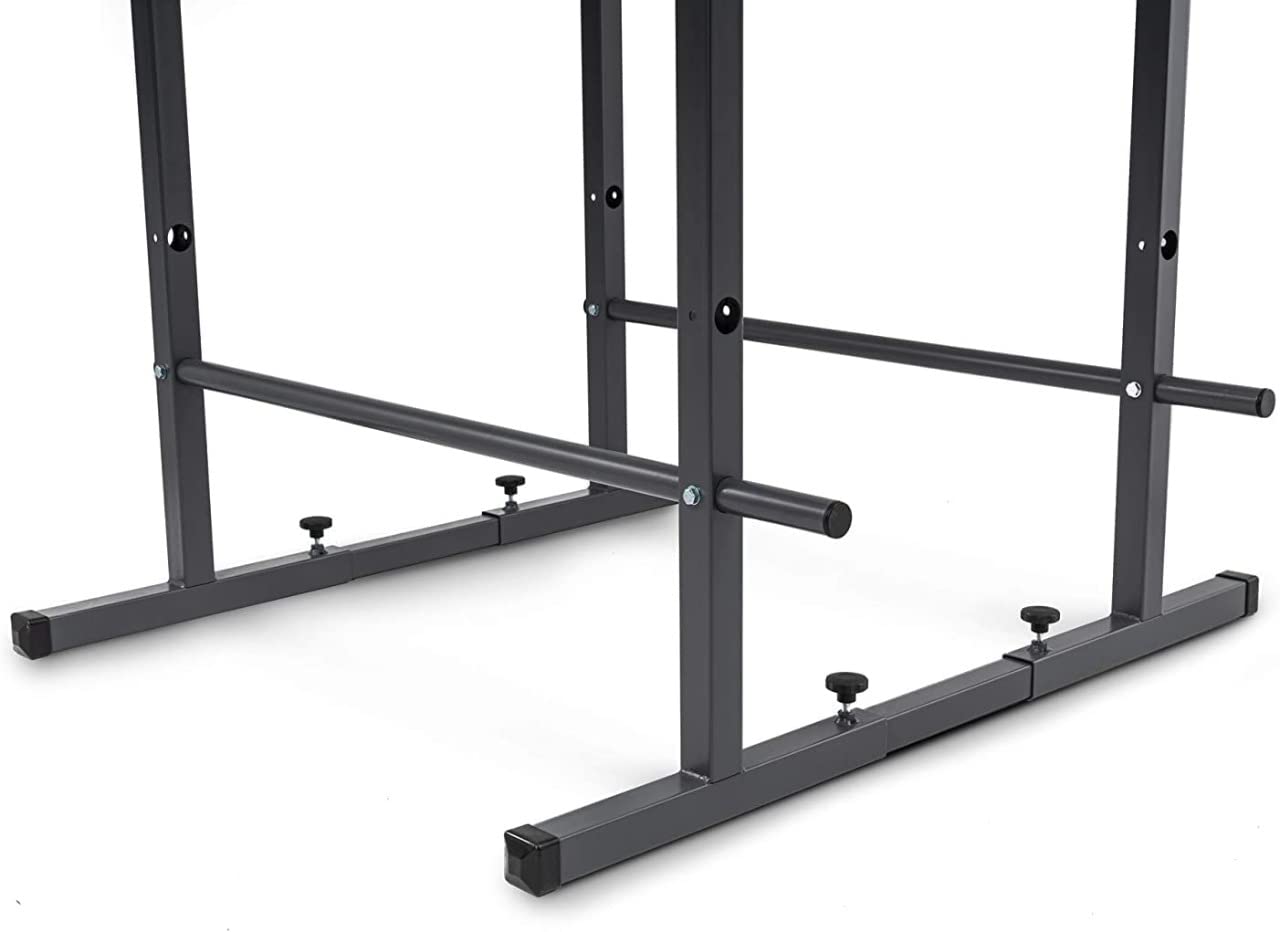 Customisation options: Height-adjustable dip bars, crossbars for push-ups and a multi-adjustable width in the range of 42 to 109 cm.