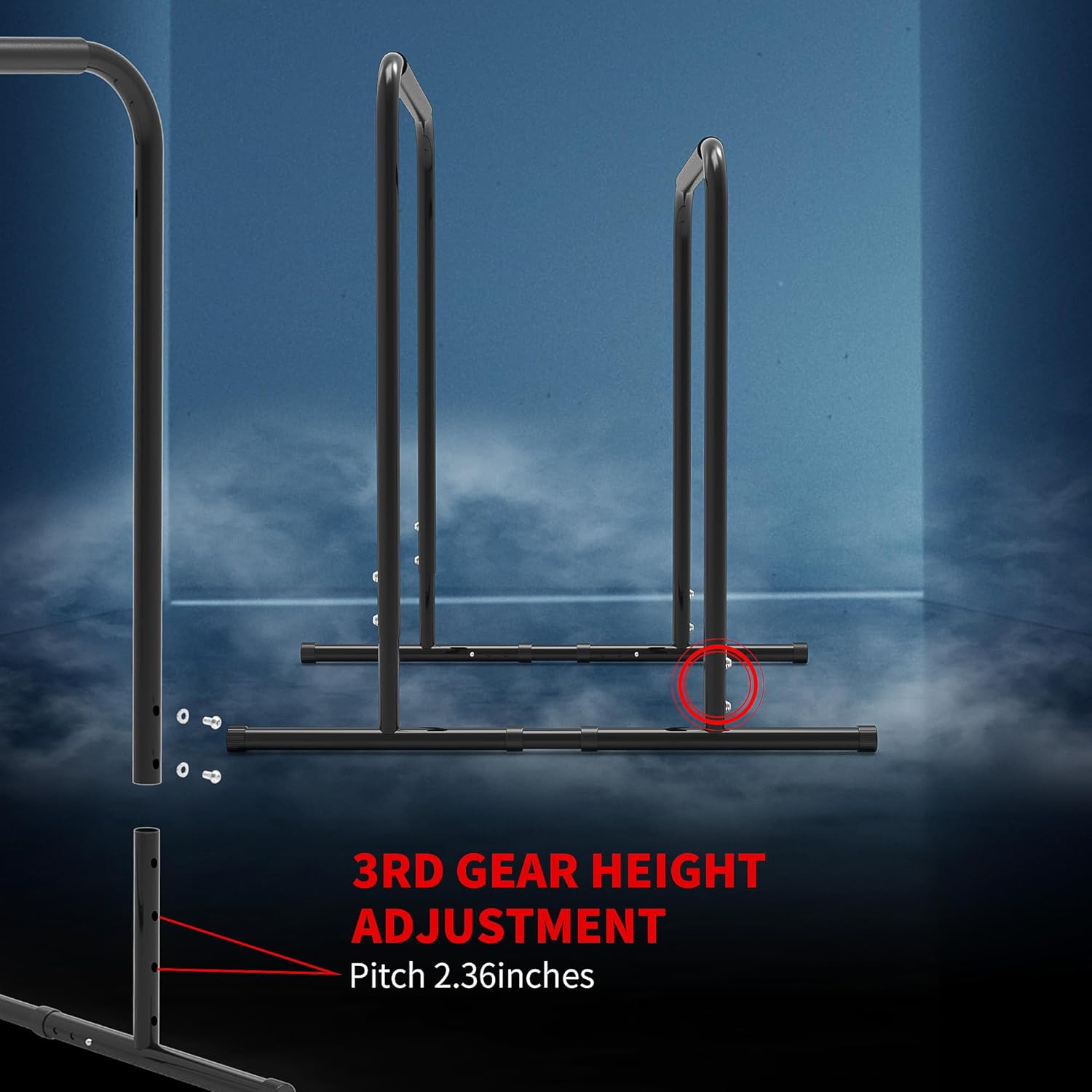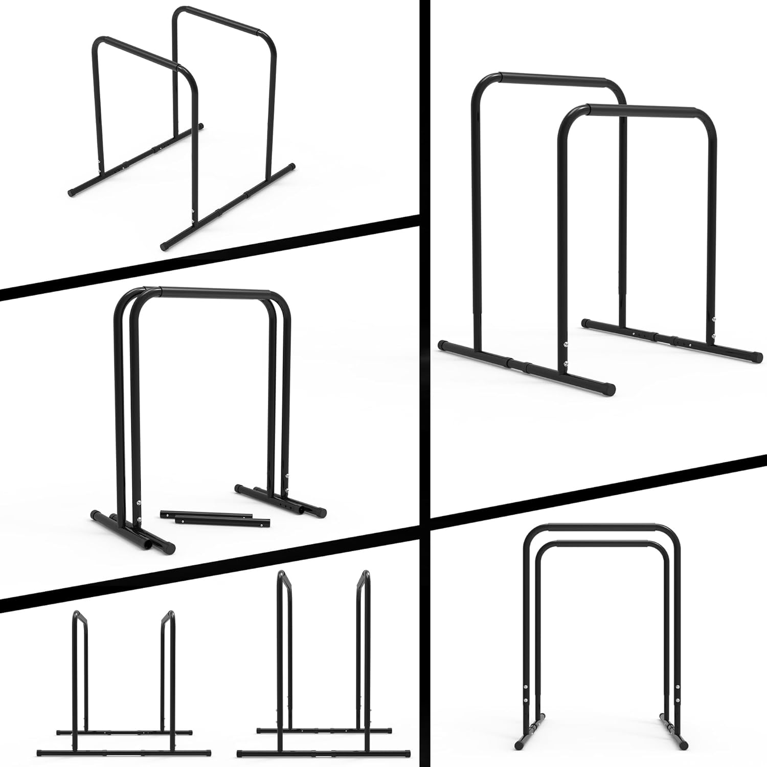 Adjustable Height:Height is 34.25-38.97 inch, you can adjust it based on yourself. Perfect for bar exercises, dips, pull ups, push ups, leg raise, bench press and more, works arms, chest, back and muscles.