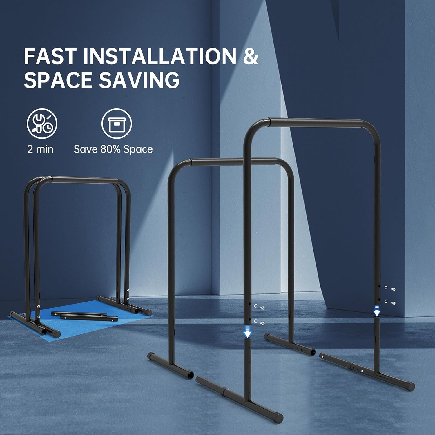 Easy Install:our strength training dip stands is very simple to install, you can install successfully and use it immediately, and it is detachable, very convenient, and storage after disassembly and save space, very suitable for indoor fitness and team training.