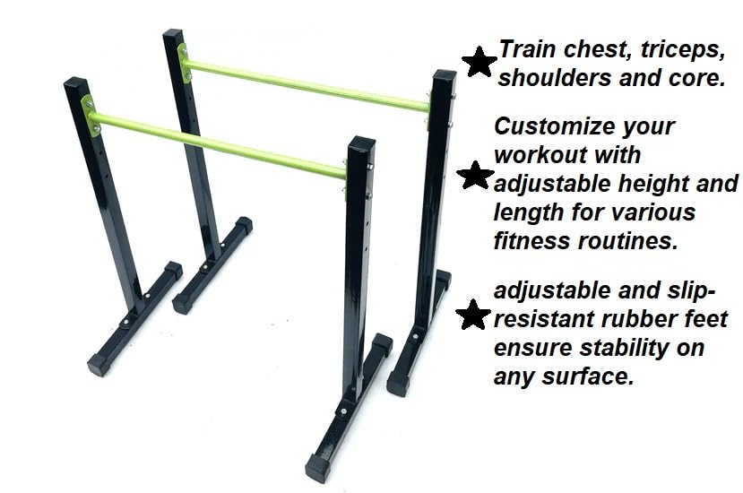 Product Details Core Exercise:you can safely train chest, triceps, shoulders and core;And also do push-ups, pull-ups, L sitting, etc. Easy Install:our strength training dip stands is very simple to install, you can install successfully and use it immediately, and it is detachable, very convenient, and storage after disassembly and save space, very suitable for indoor fitness and team training. Adjustable you can adjust it based on yourself. Perfect for bar exercises, dips, pull ups, push ups, leg raise, bench press and more, works arms, chest, back and muscles. Solid Material:Dip stands made of heavy duty steel and supports to 200 kg, durable steel construction provides safety assurance during exercise. Protect The Floor:The non-slip rubber cap at the bottom can protect your floor from damage and scratches.