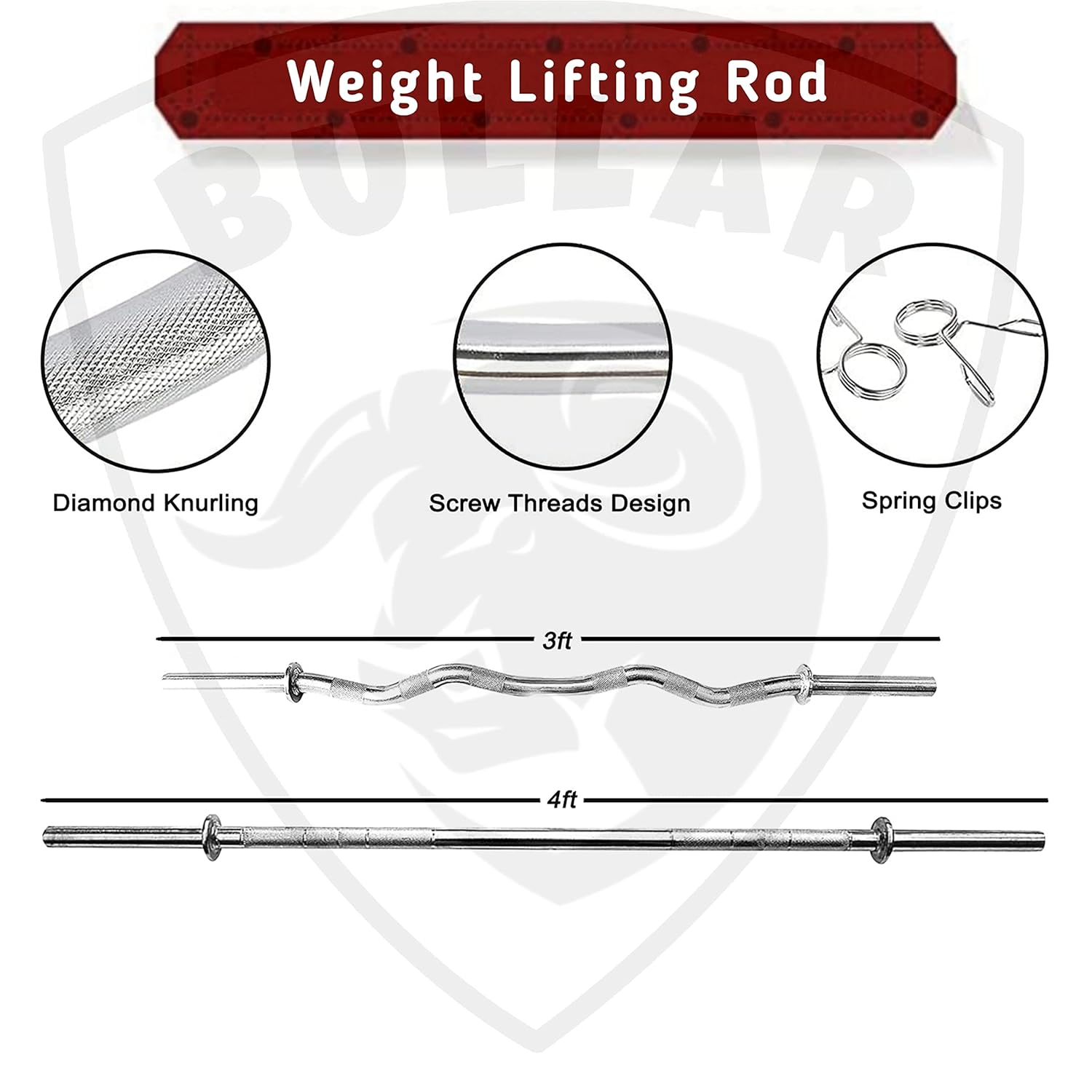 3 FEET CURL & 4 FEET STRAIGHT WEIGHT LIFTING RODS WITH LOCKS