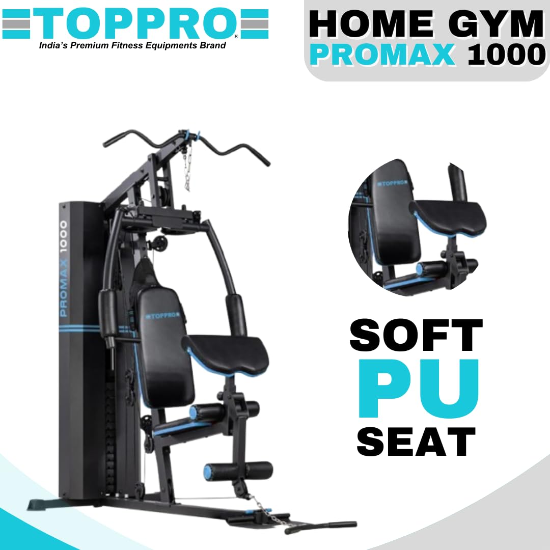 HOME GYM PROMAX 1000 It has Top grade 2″ high density PU cushioning . Individual pads gives us very smooth & soft support. HOME GYM PROMAX 1000 is totally rustproof because it comes with Electro Staticaly Applied Powder Coated.