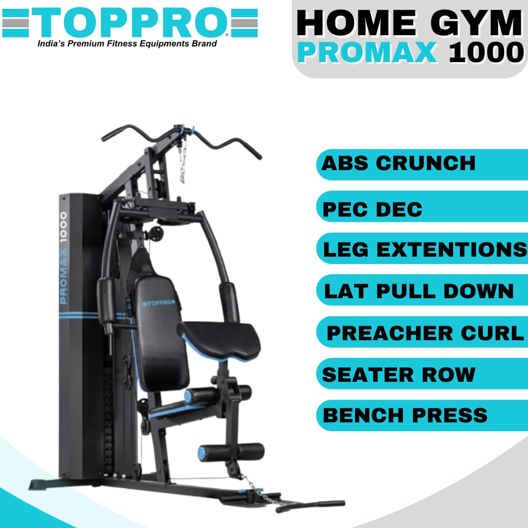 |TOPPRO FITNESS| HOME GYM PROMAX 1000 (Set up area) Length 175 CM , Width 86 CM , Height 198 CM, Maxium user weight 160 kgs & Net Weight 146 kgs.