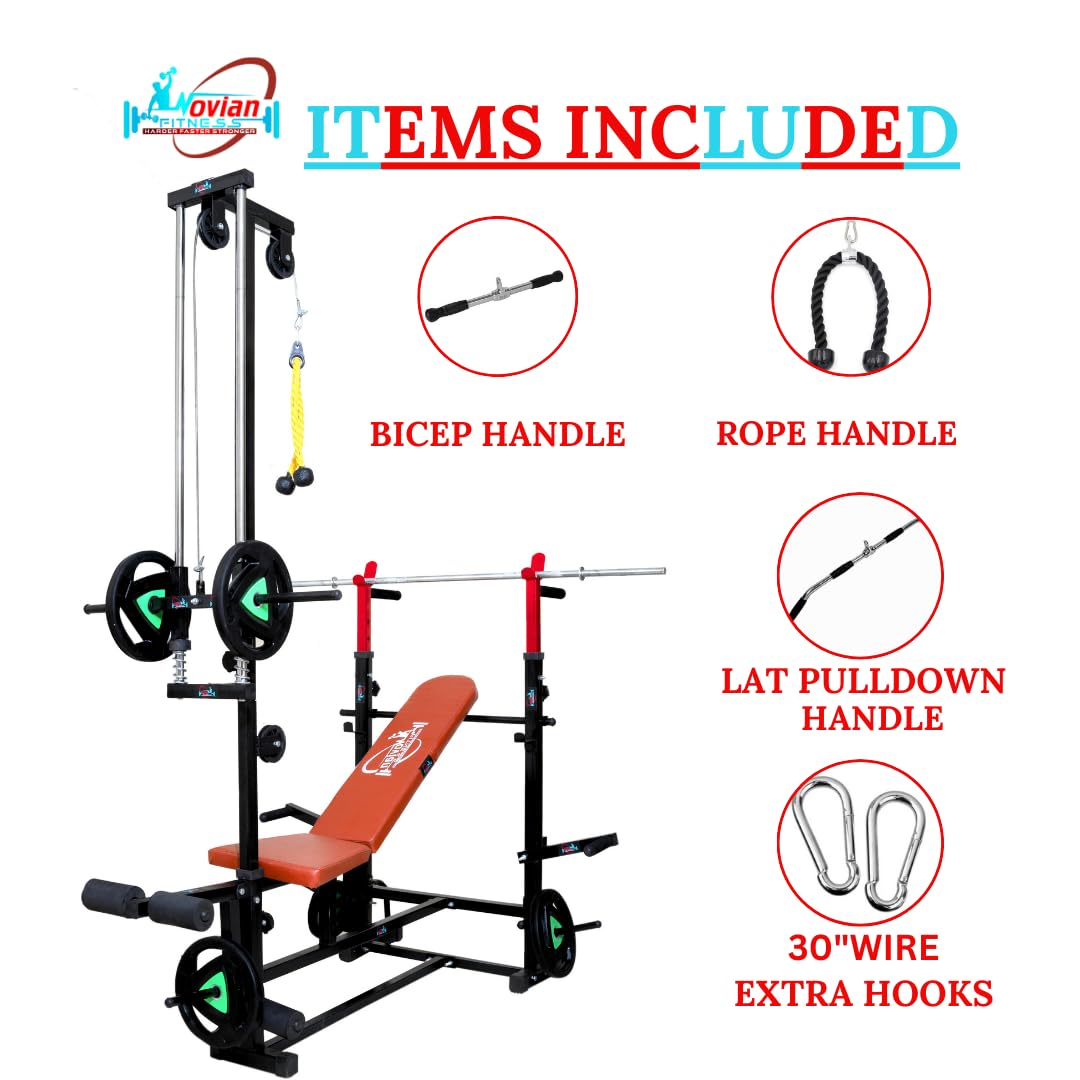 Be the first to review “Multi-Station Adjustable Weight Bench with LAT Pulldown Tower, Cable Pulley System, Adjustable Bench Incline Decline & Flat 250 kg Capacity, Fitness Bench, Home Workout , Gym Bench,”