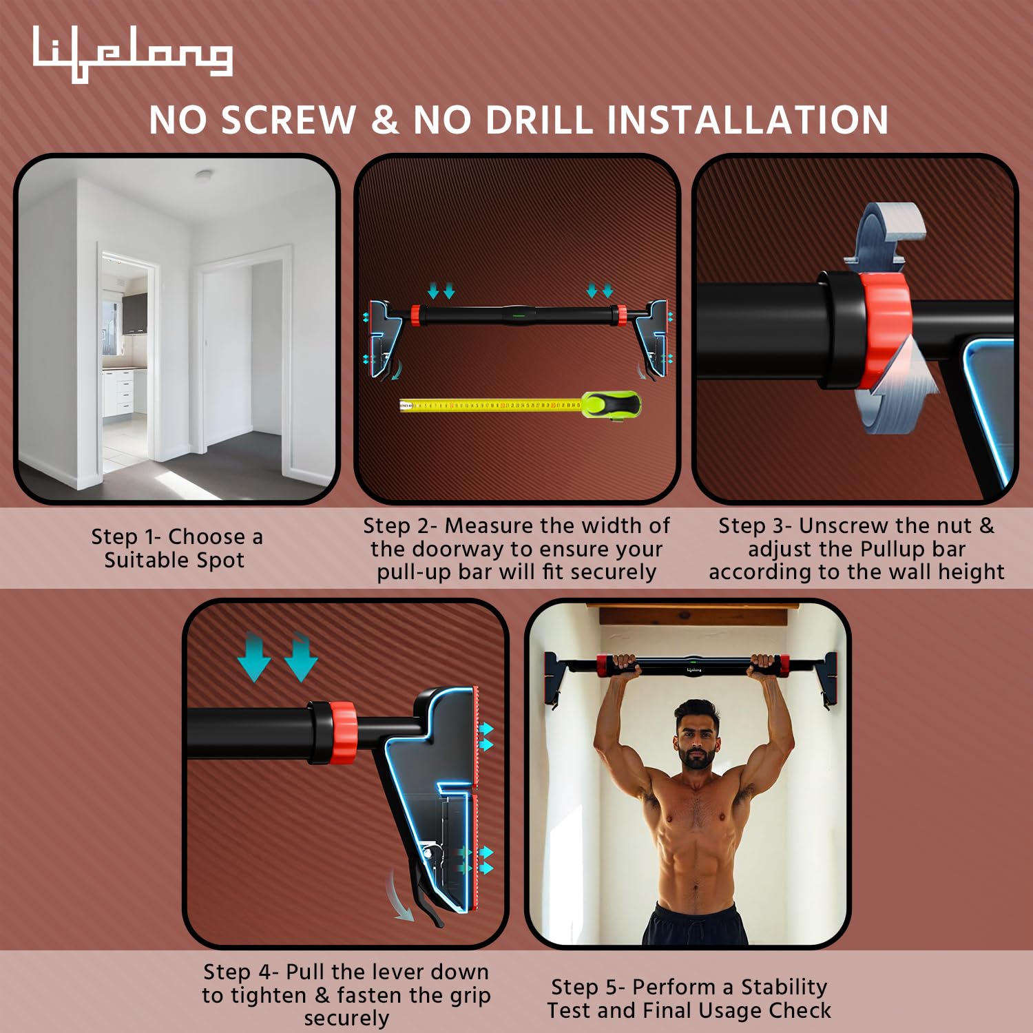 Lifelong pull-up bar is built with high-density threading and reinforced with neat screws, clip bolt nuts, and rivets, making it extremely durable and safe. This sturdy construction gives you peace of mind while you focus on pushing your limits