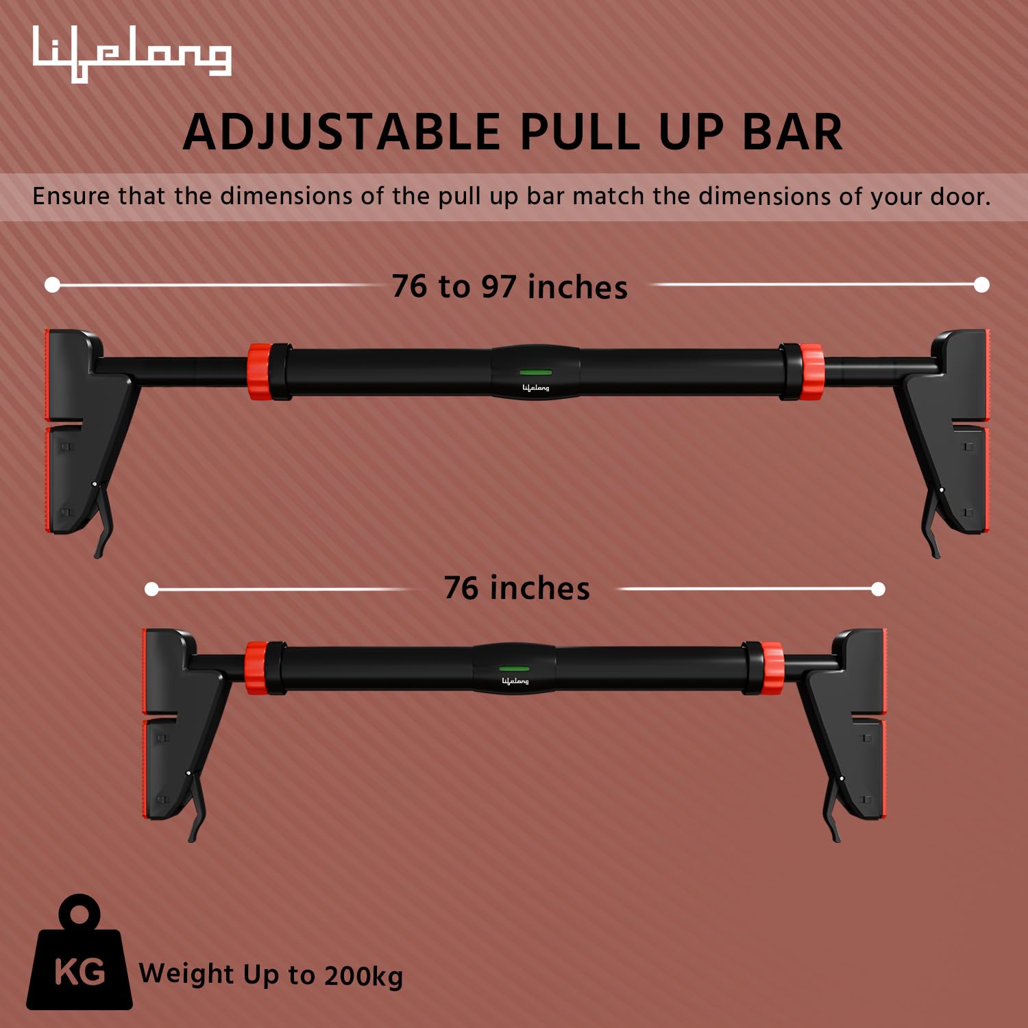 Lifelong Adjustable Pull-Up Bar for Home Gym | No Screws Hanging Bar, Adjustable Length (76-97cm), Doorway Chin-Up Bar, Gym Equipment for Men Workout, Strength Training, Weight Capacity (400kg)
