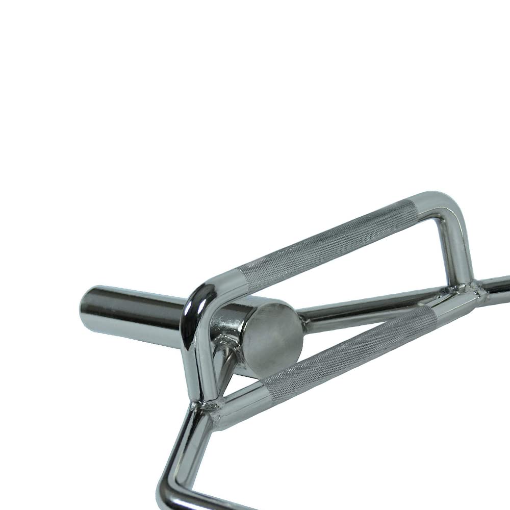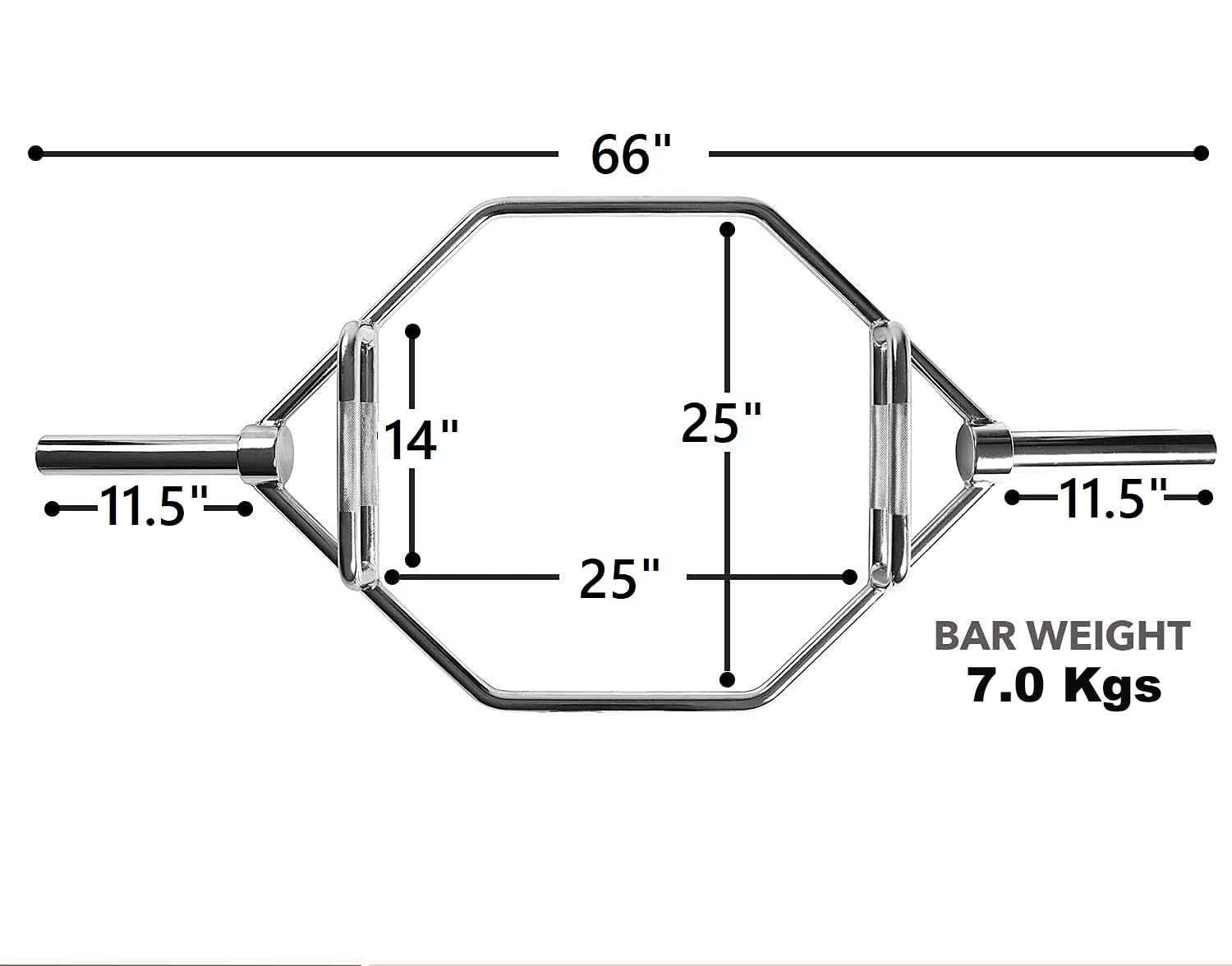 Hexagonal frame design keeps your 50 mm diameter Olympic weights centered during heavy lifting, engaging the quads instead of the lower back. Steel construction with sweat resistant chrome finish on this hex bar. Designed for high durability and anti-rust capabilities with proper use and care. Knurled handles enable an improved grip and added comfort while lifting this trap bar.