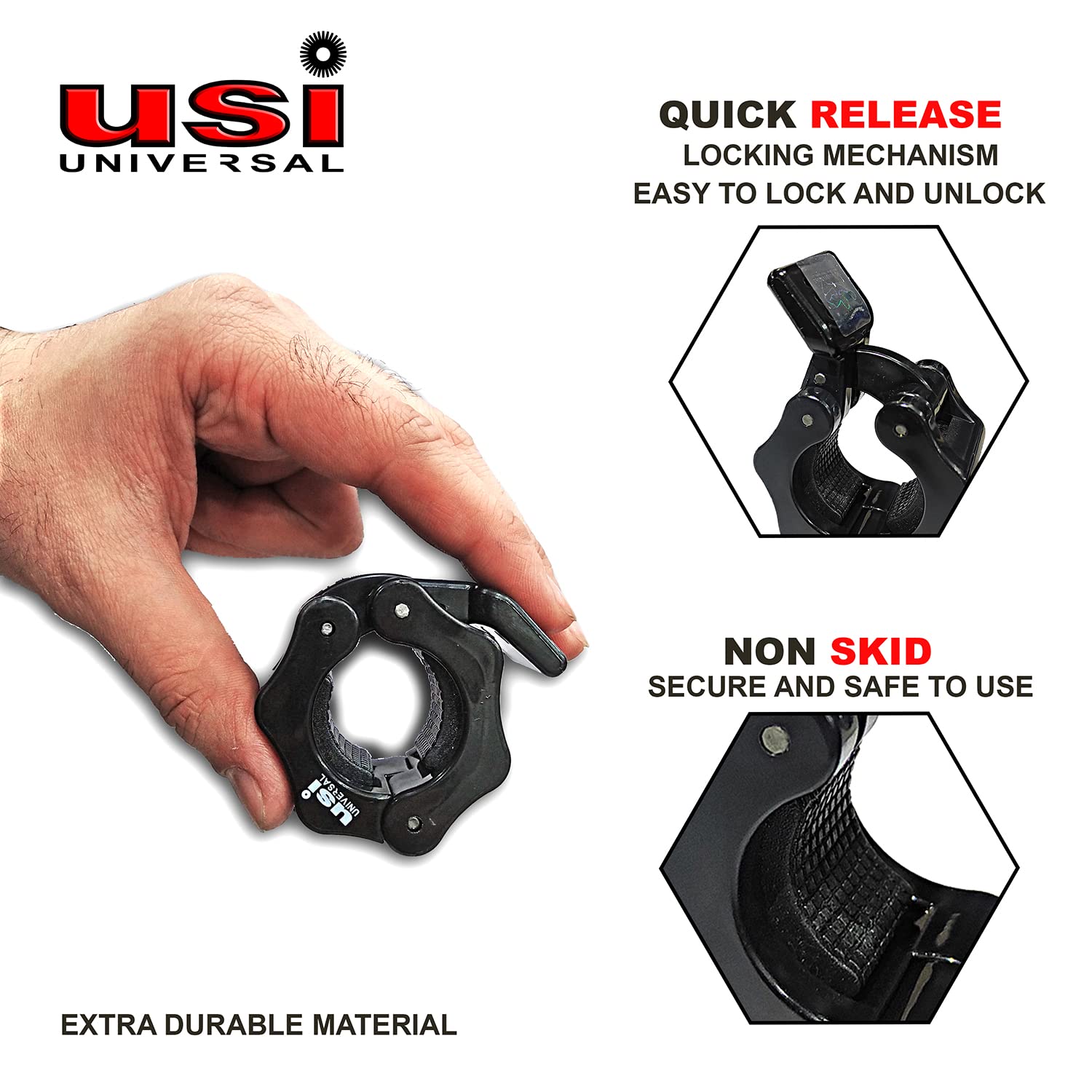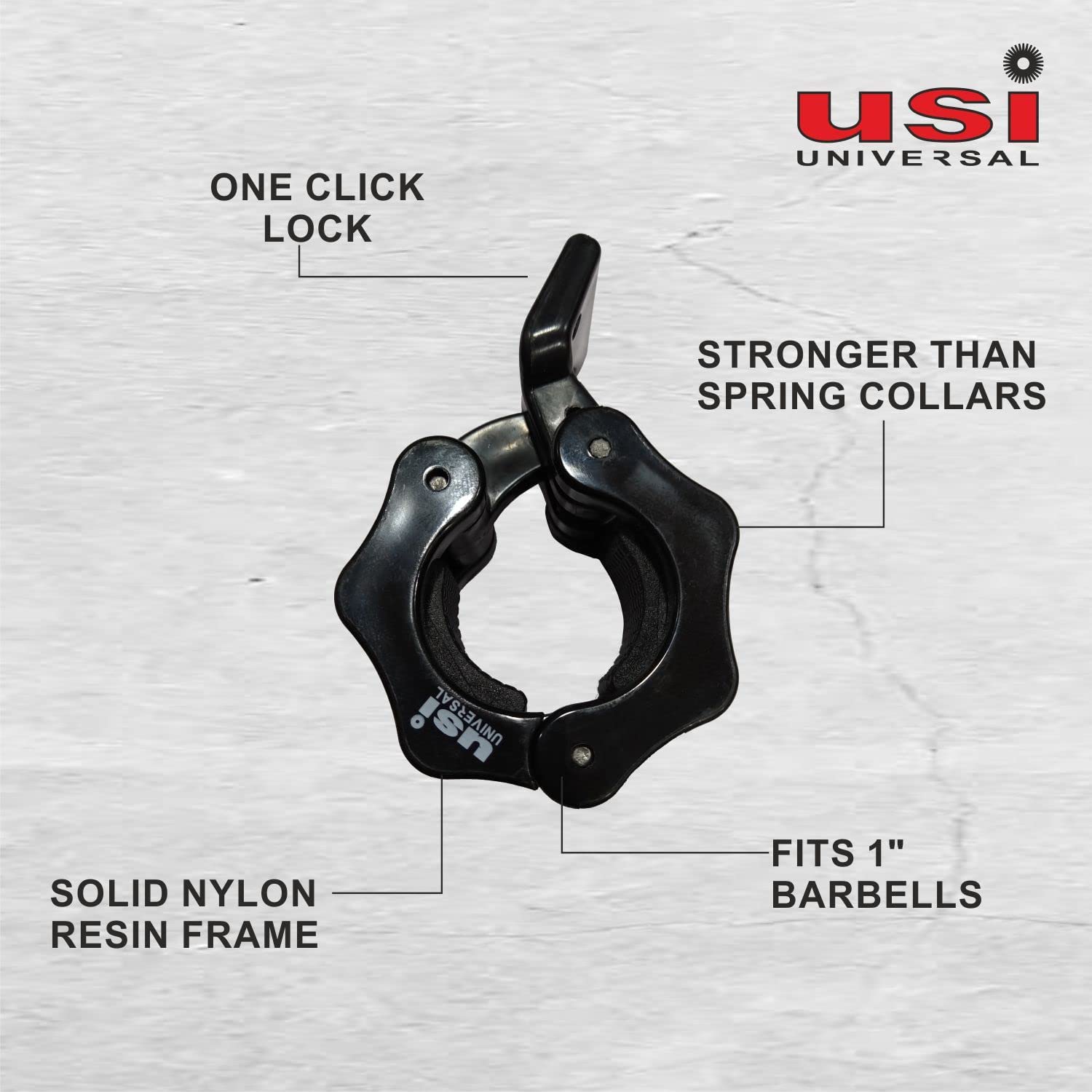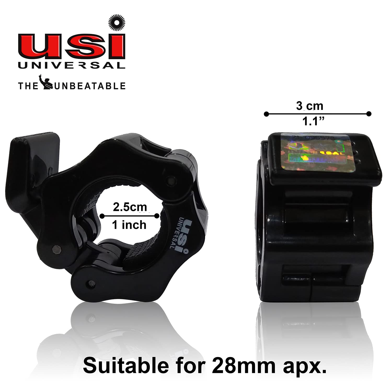 USI UNIVERSAL Weight Bar Locks, LJ1 Weightlifting Bar Collar, Plastic Rod Locks, Barbell Clip Pair for 23mm Gym Rods, Plastic Classic Barbell Locks For 23mm Weight Lifting Bar (Black)