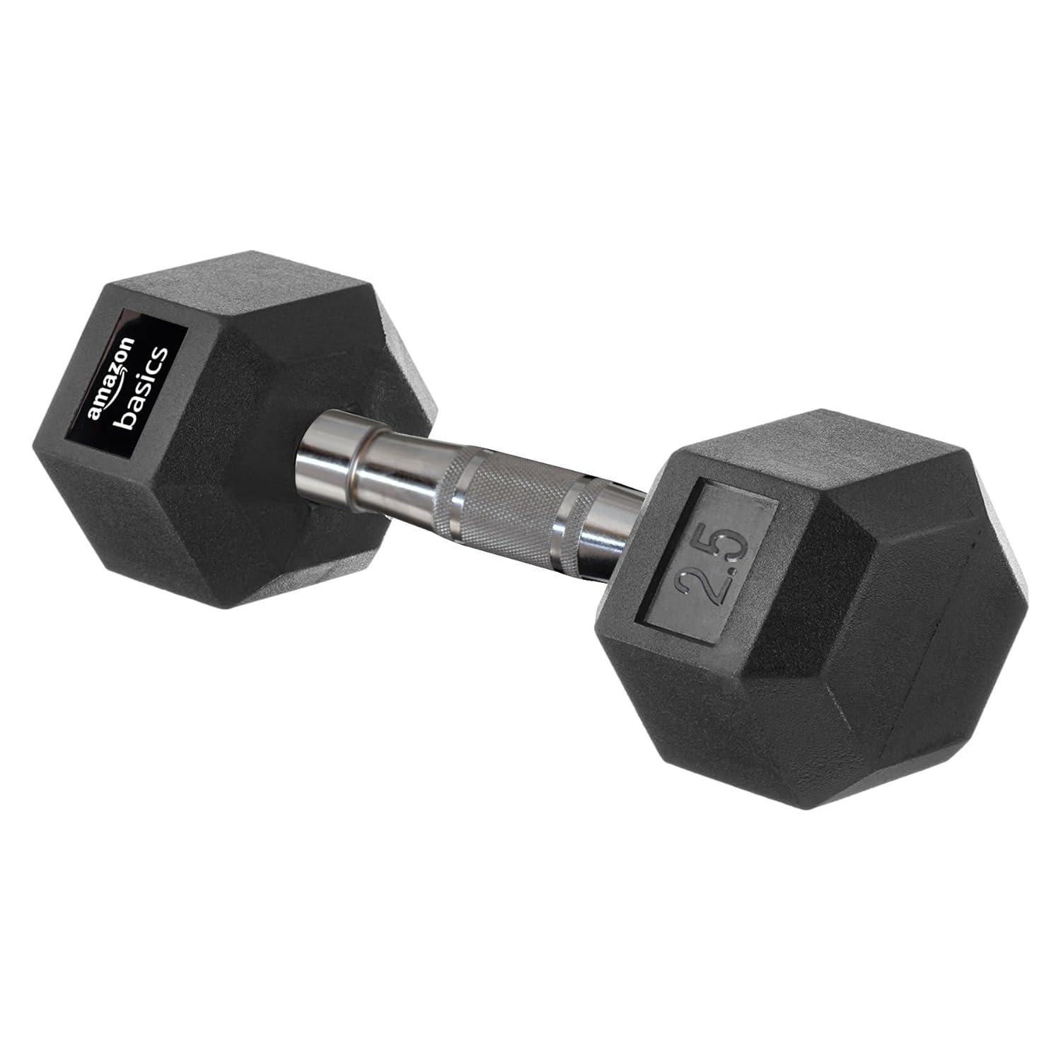 amazon basics Rubber Encased Hex Dumbbell Weight Set Of 2, 2.5 Kg,Black