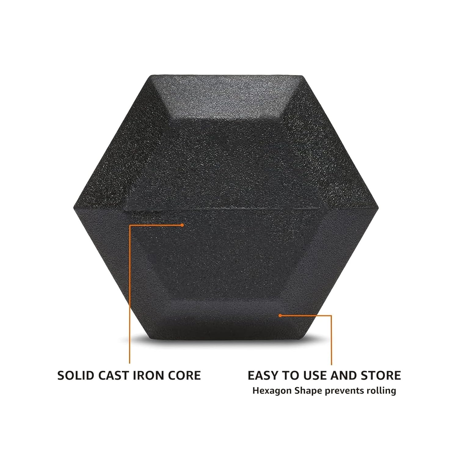 Dumbbell for resistance training—great for arms, chest, back, core, and legs,Solid cast-iron core for reliable strength; will not bend or break after repeated use,Hexagon-shaped rubber-encased ends help prevent rolling and promote stay-in-place storage,Contoured, textured, chrome handle for a comfortable, secure grip.