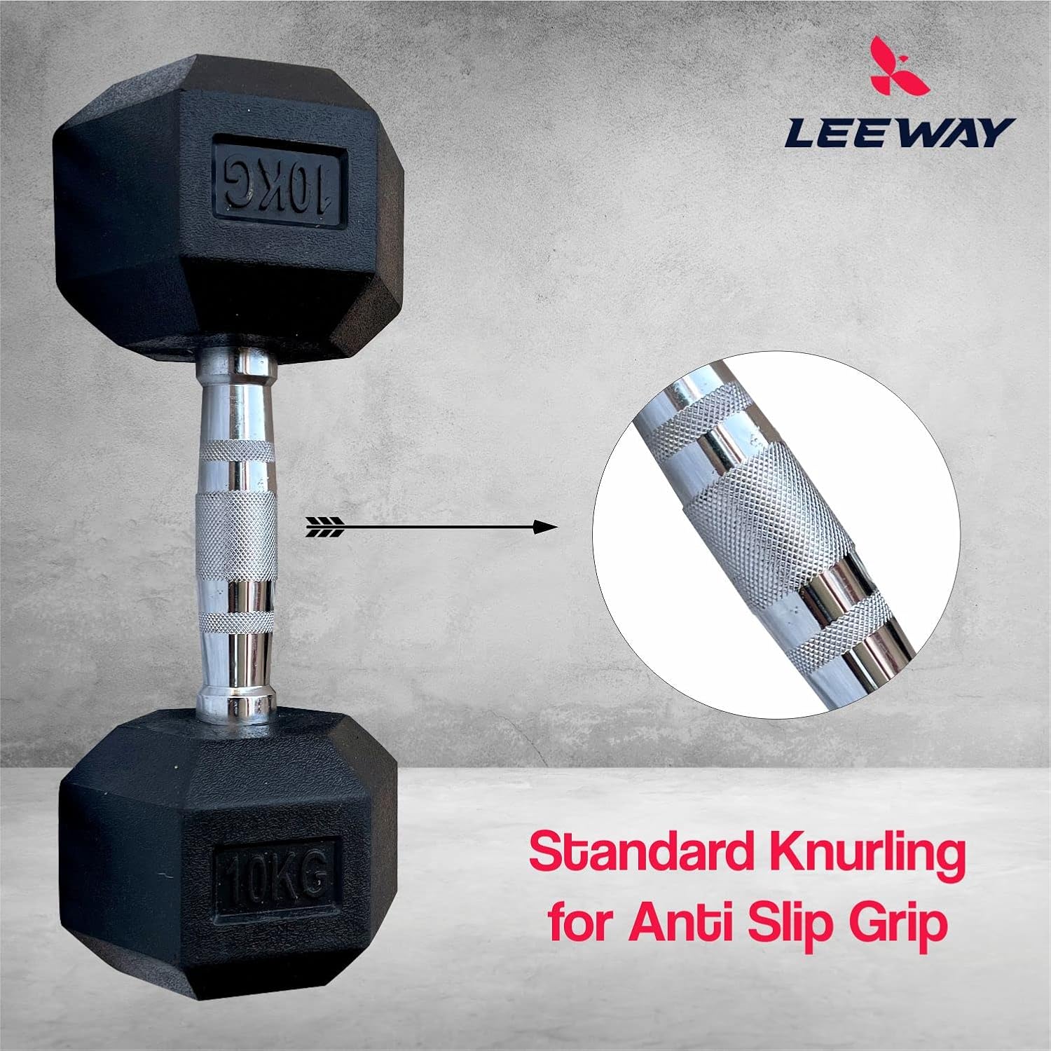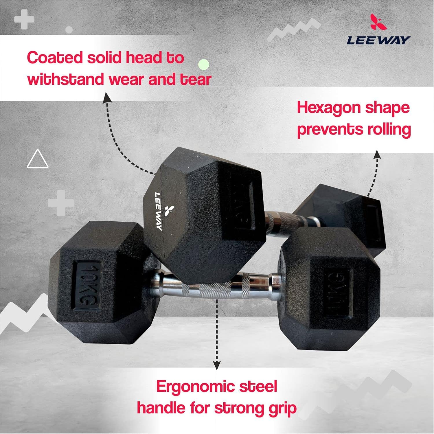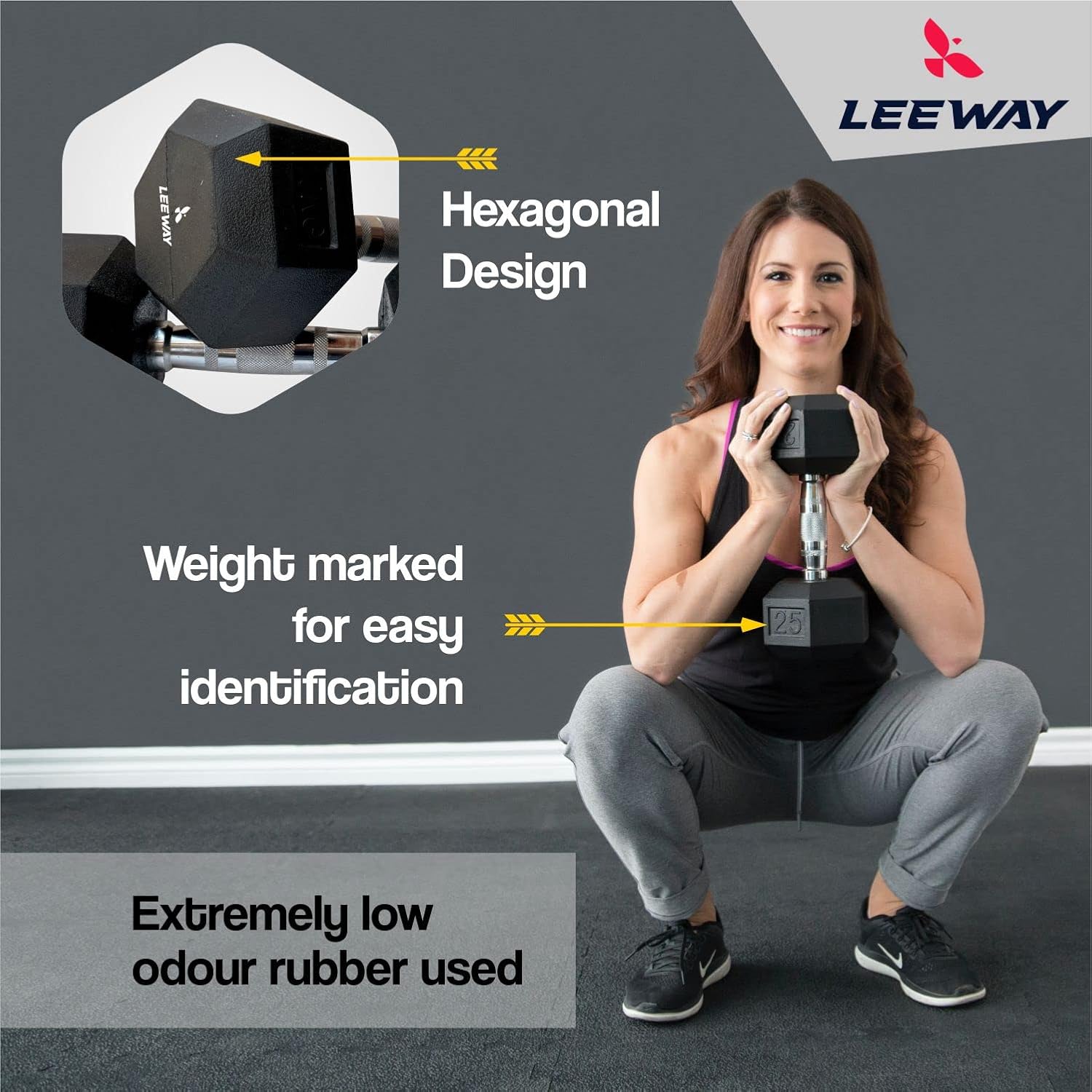 LEEWAY Hex Dumbbells Weights Pack (2.5 kg*2)| Dumbbells set for home gym, Gym dumbbell set, Rubber Encased Hex Fixed Dumbbell Weight, Dumbells2.5kg pair for women, Dumbbell sets online Hexa, Rubber dumbbell set Home Gym Equipment (2.5Kg Pair)