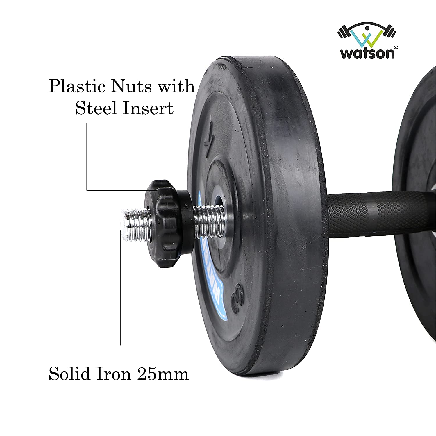 Steel Dumbbell rods with PVC nuts with metal nuts inside. Rod locks are round type. Perfect for muscle building
