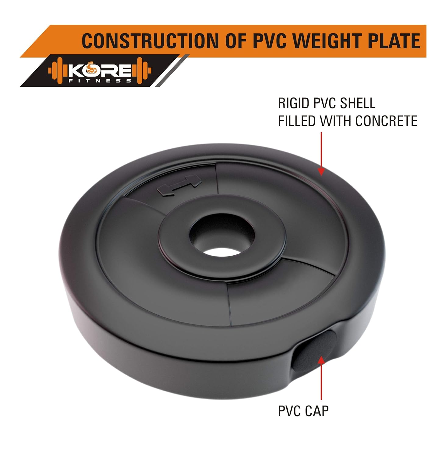 Kore RW PVC Plate-30KG (5 KG X 2 + 10 KG X 2) Weight Plate, Black