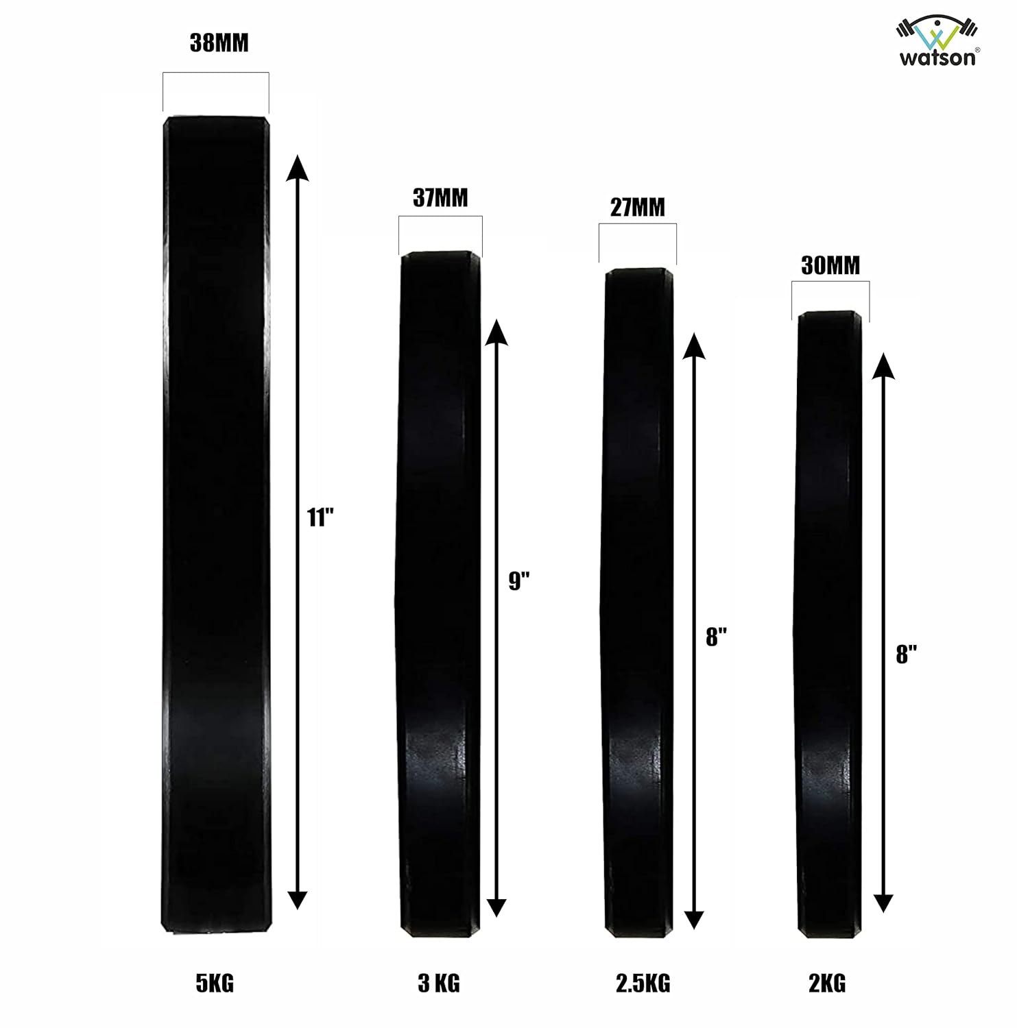 Rubber Weight Plates: WATSON gym rubber weight plates is specially designed for home gym workouts. These rubber plates is pure rubber coated with inner plastic ring.