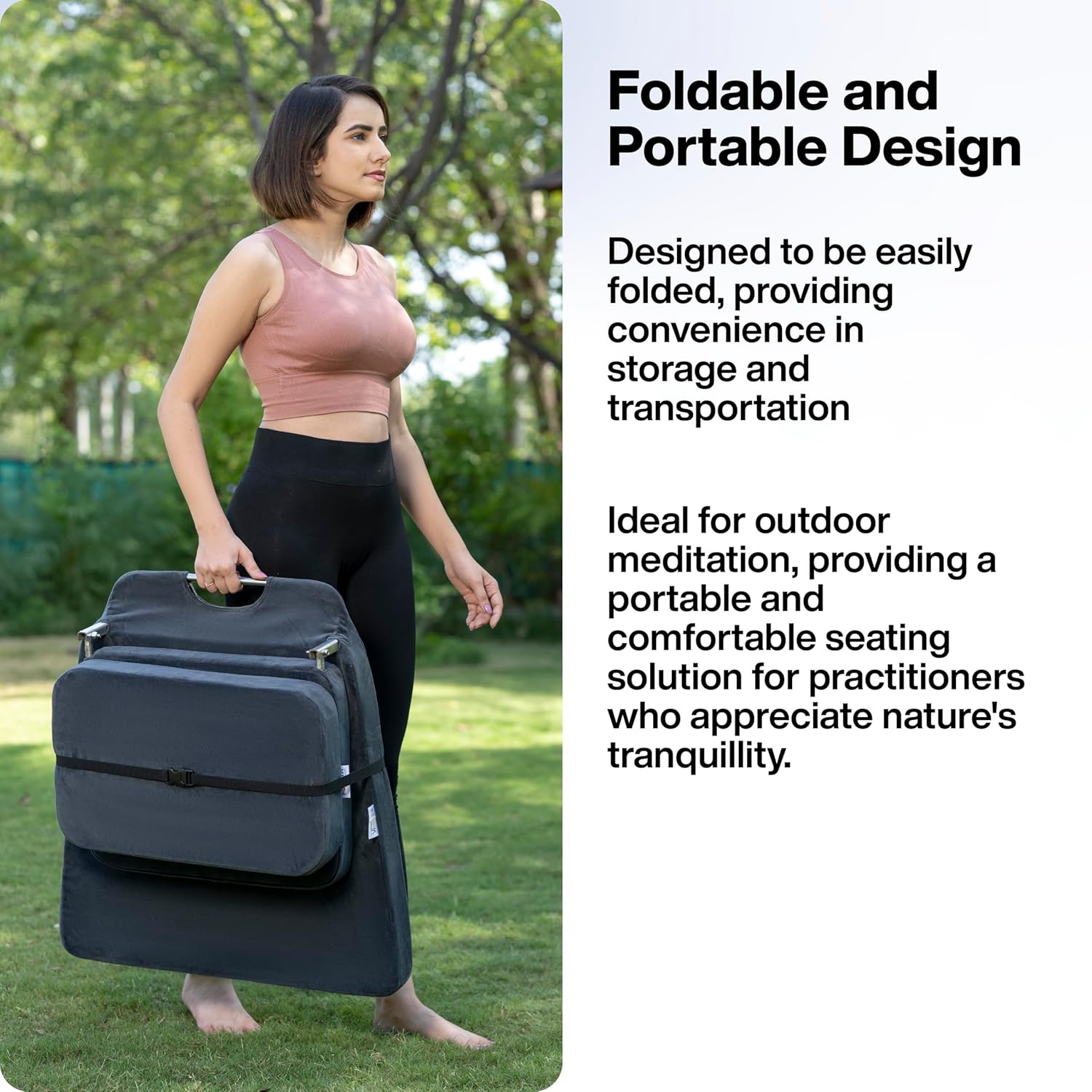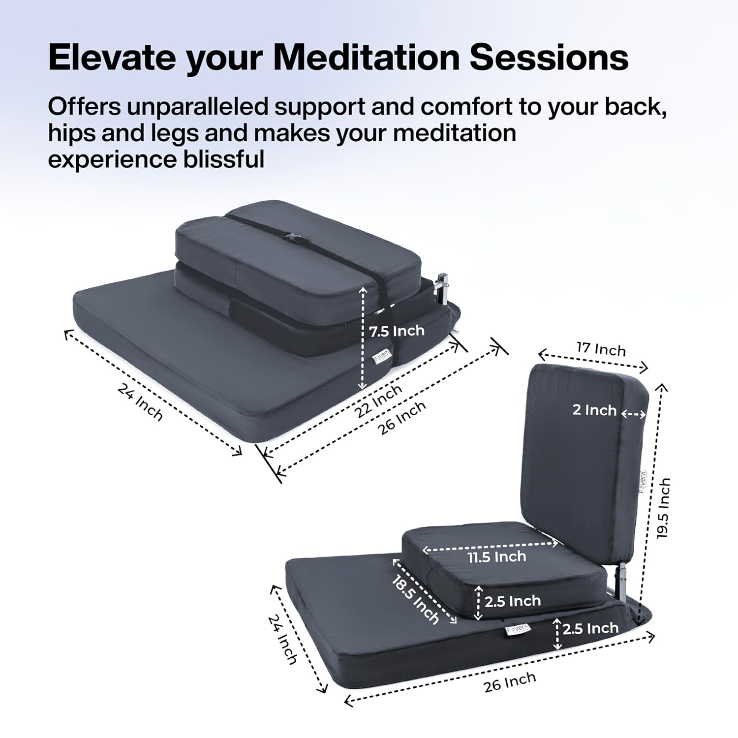 FOVERA Meditation Chair | 2 Years Warranty | Large Foldable Floor Chair with Back Support for Relaxing, Yoga, Meditation | Meditation Block, SS Frame, Washable Cover & Portable (Dark Grey)