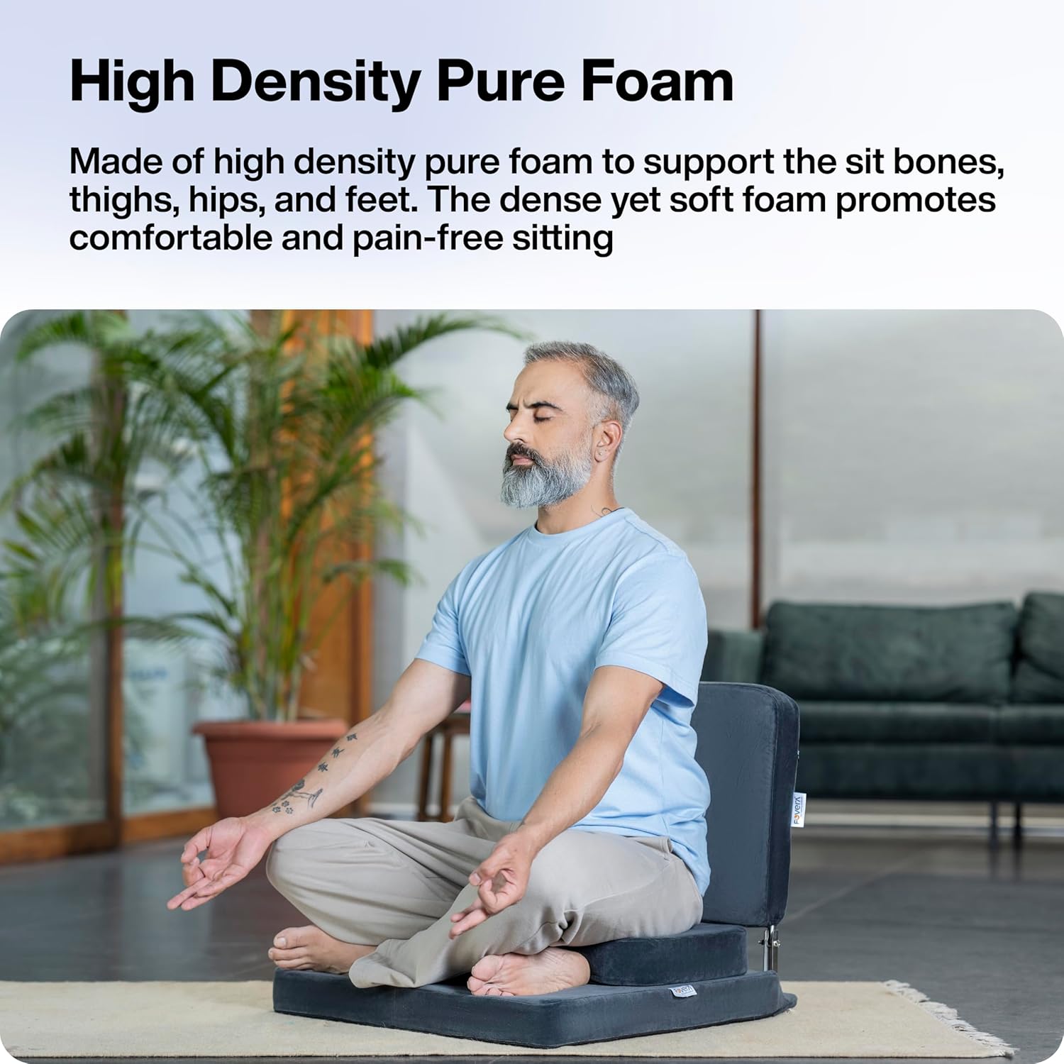 ππππ π¦π¨π£π£π’π₯π§ ππ‘π π ππππ§ππ§ππ’π‘ πππ’ππ: The back support helps keep the spine aligned at a 90-degree angle, preventing back pain during long sitting sessions. The chair includes a foam block which is helpful for those who face difficulties sitting cross-legged or in Padmasana.