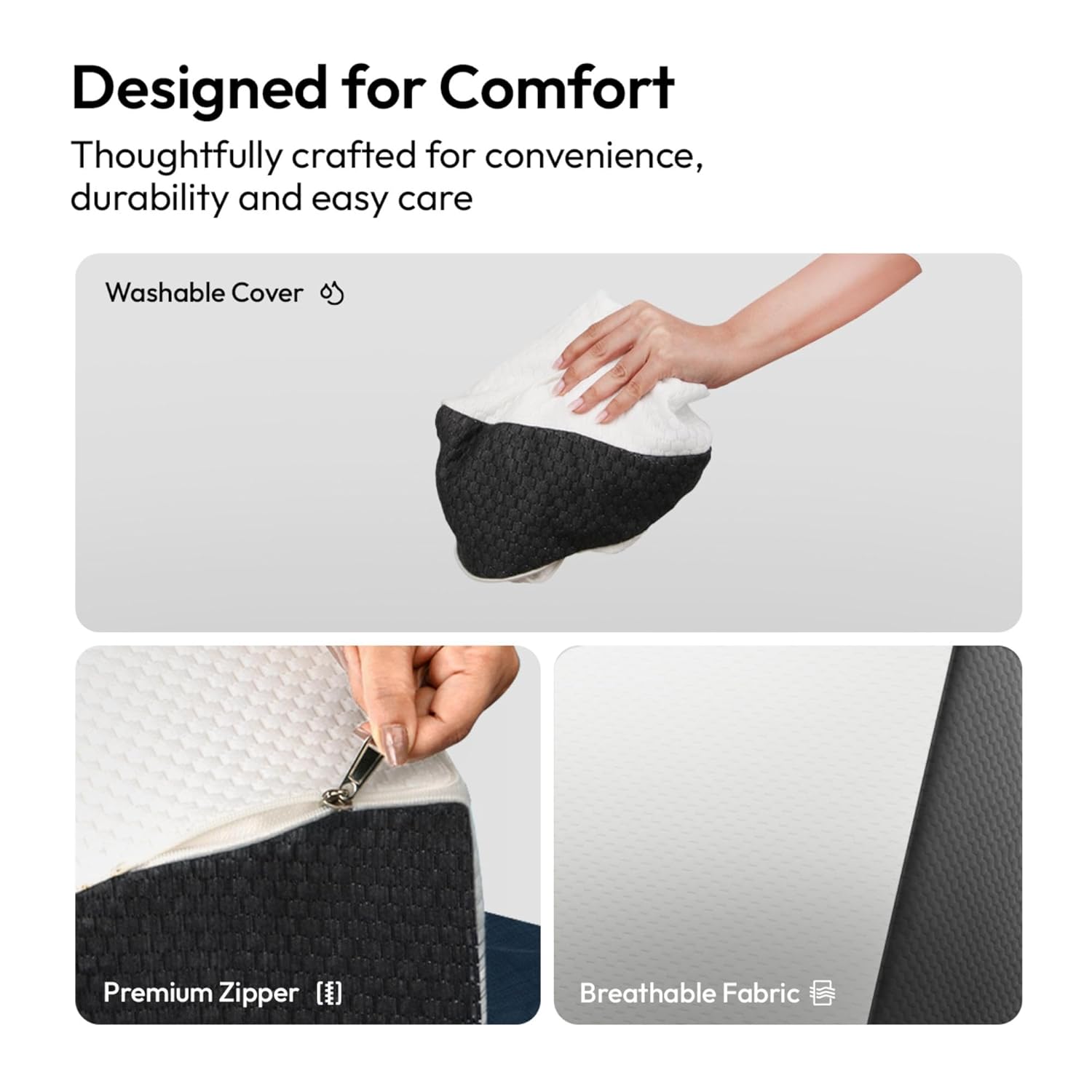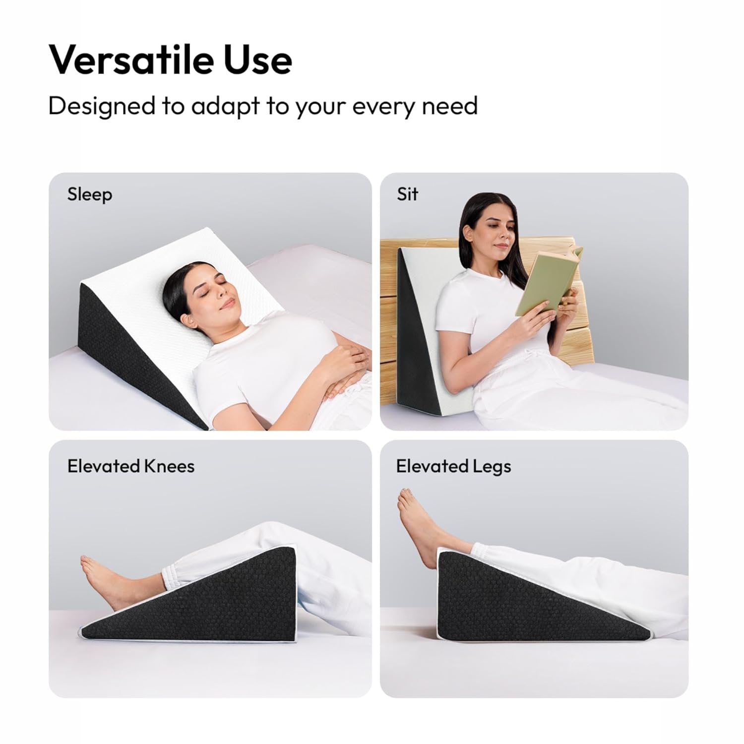 Frido Wedge Plus Cushion for Sleeping & Acid Reflux Relief, Memory Foam & High Resillience Foam, Orthopedic Wedge Cushion for Leg Elevator, Pregnancy, GERD, White & Grey- Pack of 1 - Fityodha.com
