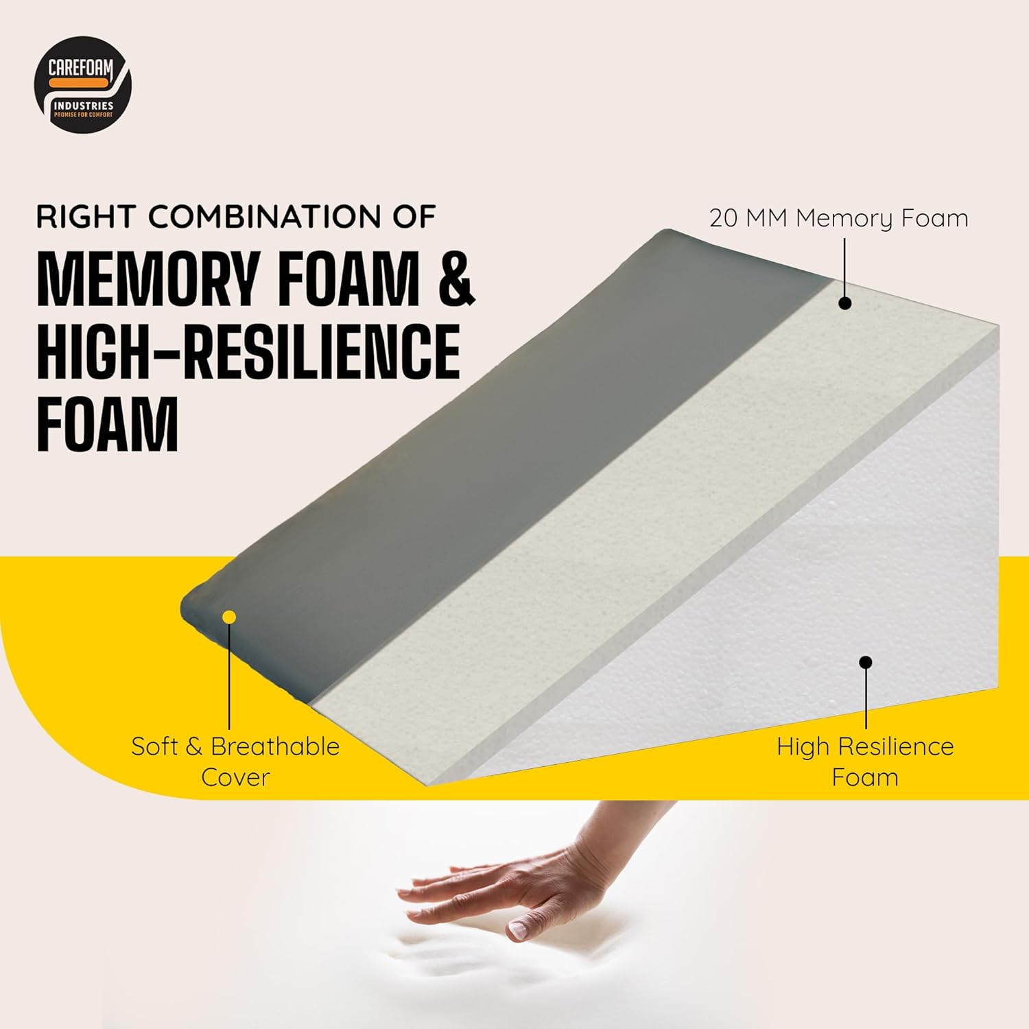 250 GSM WASHABLE VELVET COVER : CAREFOAM bed wedge pillow features a premium high-GSM velvet fabric cover that is removable and machine washable for easy maintenance.
