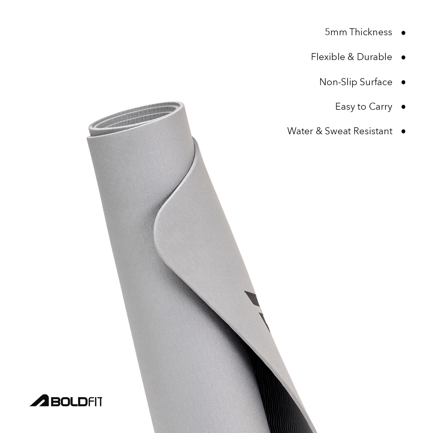 Boldfit Yoga Mats For Women Yoga Mat For Men Exercise Mat For Home Gym Mat Anti Slip YogaMate 5mm Workout Mat YogaMat For Kids Yoga Mate Gym Mats – Grey