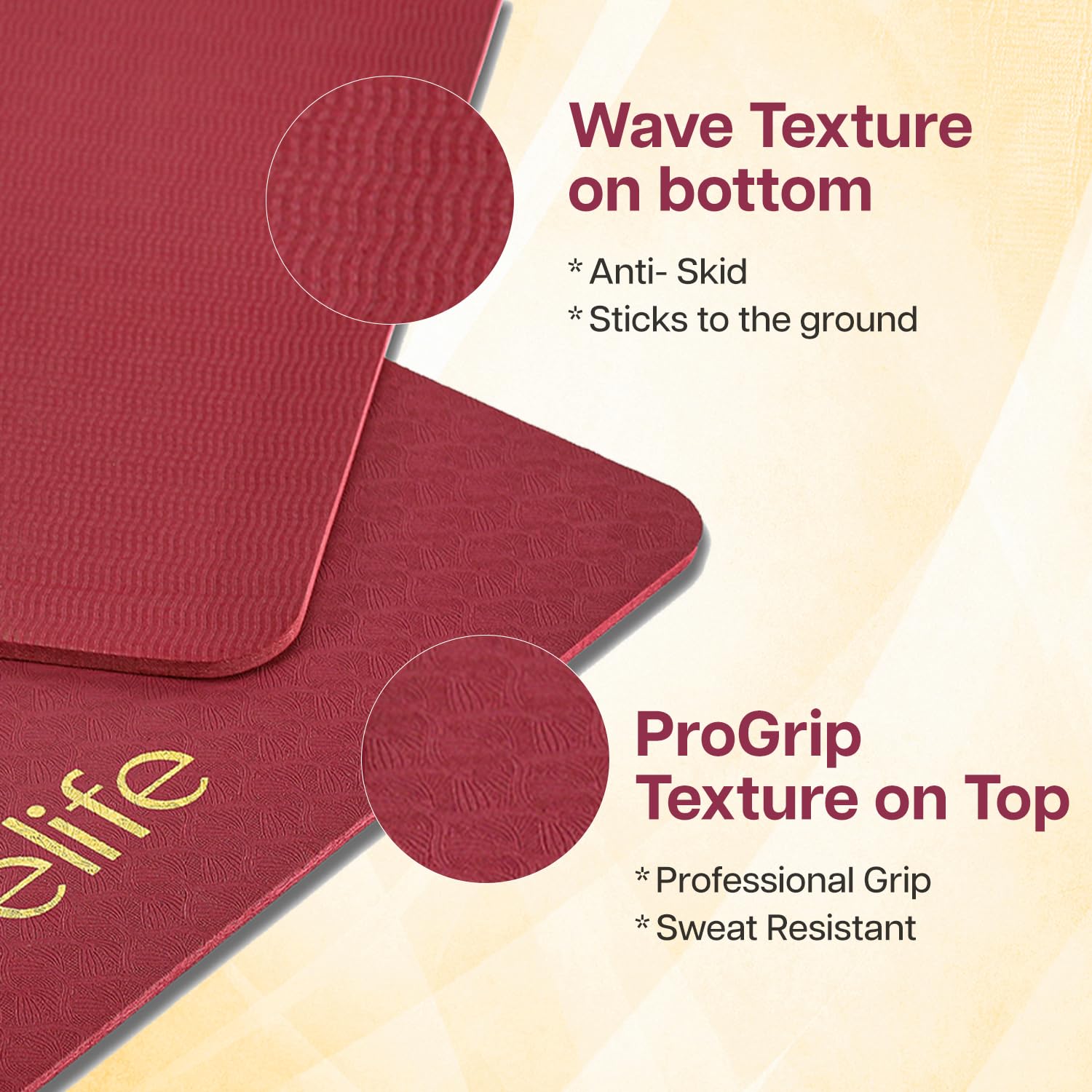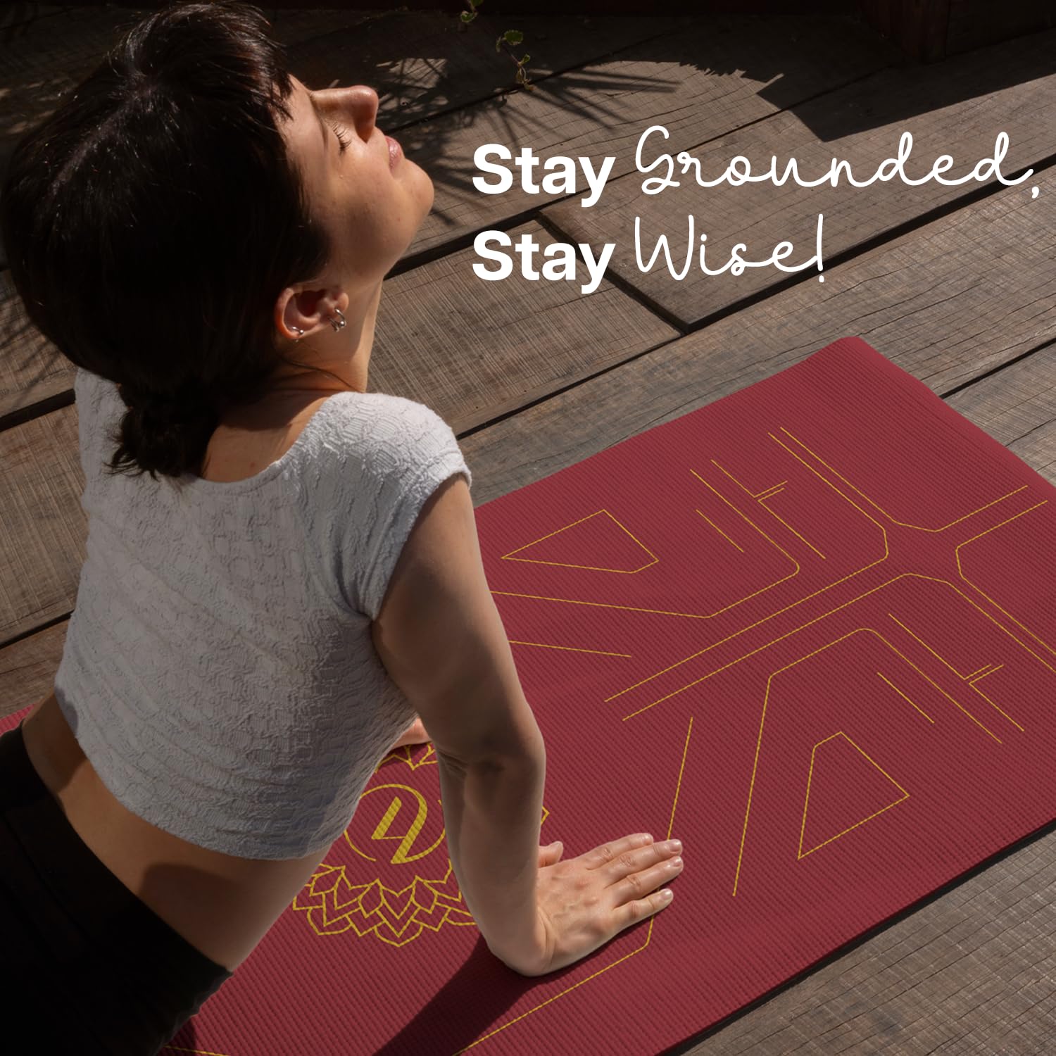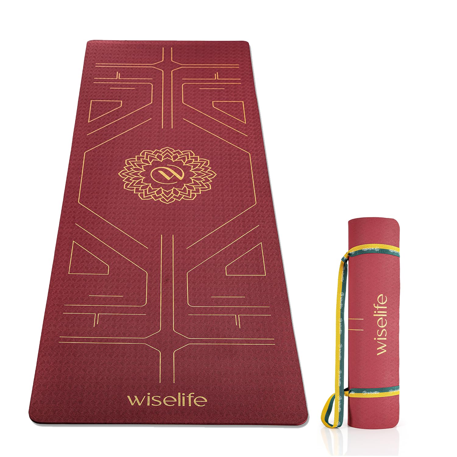 Wiselife Tru Body Alignment Yoga Mat + Sleek Yoga Strap For Men And Women | Non-Slip Textured Extra Wide & Thick | Pro Balance Tpe Exercise Mat For Home, Pilates, Gym & Fitness (6MM, Wine) - Fityodha.com